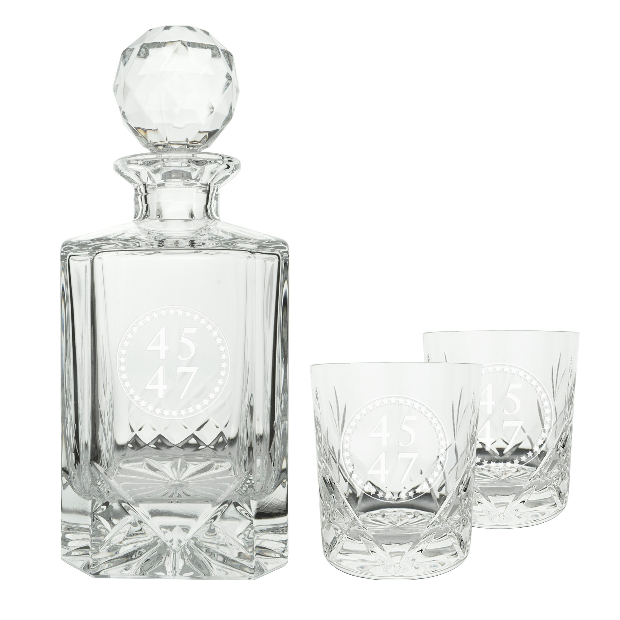 The perfect vessel for your office bar cart, fill with your favorite amber colored liquid and sip to success with the exclusive 45-47 whiskey set.