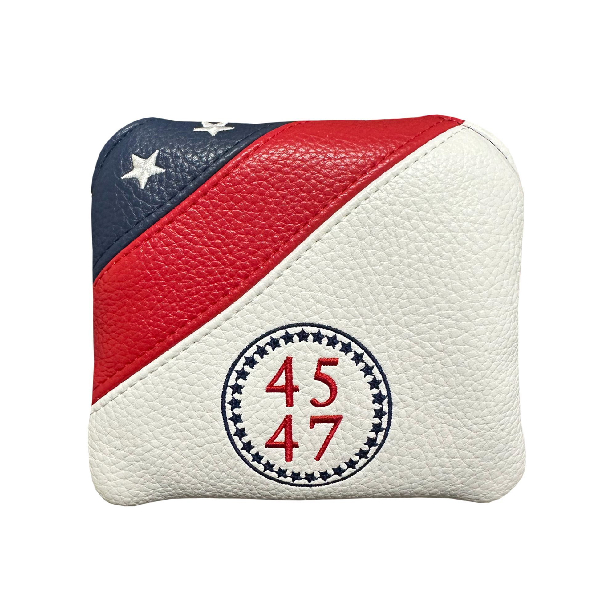 Bring bold American pride to the course with this 45-47 Mallet Headcover. Featuring a red, white, and blue color scheme with the official 45-47 logo embroidered, it’s the perfect blend of style and protection. Designed to fit most mallet and spider-style putters, this cover secures easily with a strong magnetic closure. Inside, a soft lining safeguards your putter’s finish from scratches and wear, so you can focus on your game with confidence.