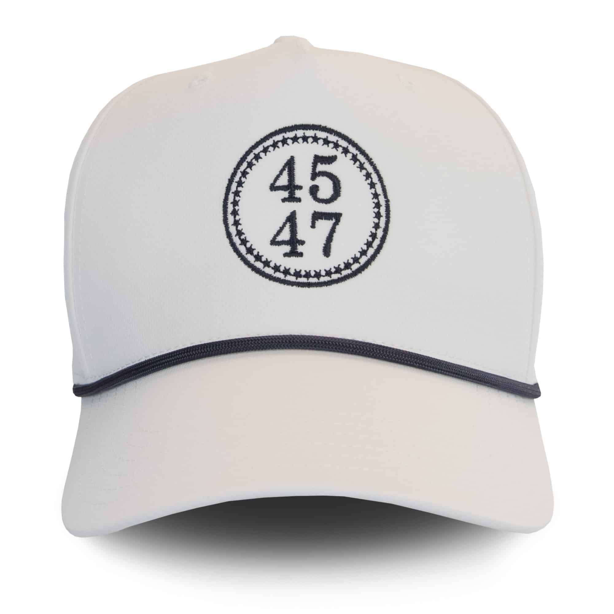 Your new favorite red hat! The 45-47 Rope hat features the exclusive win logo and an American flag embroidered at the left temple.