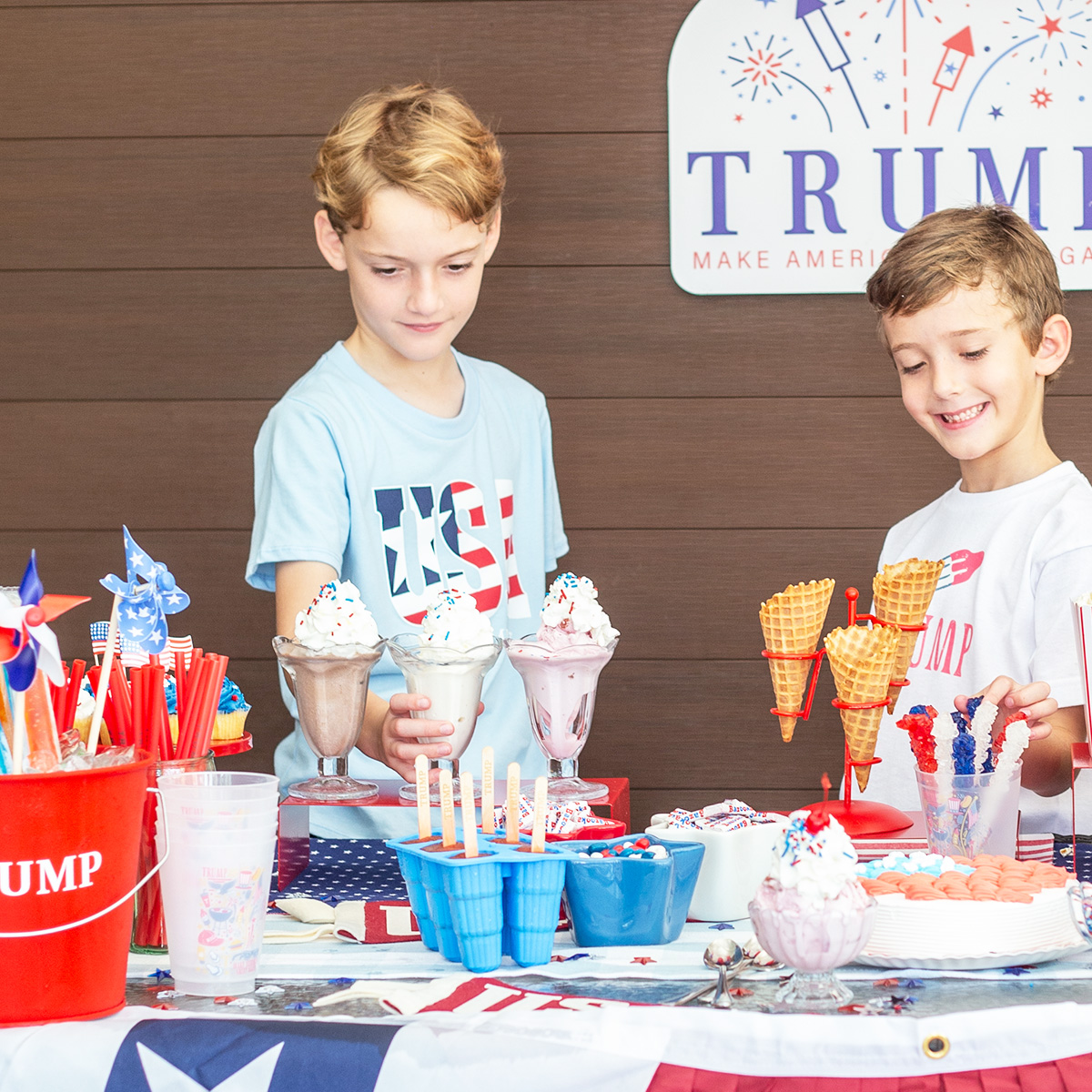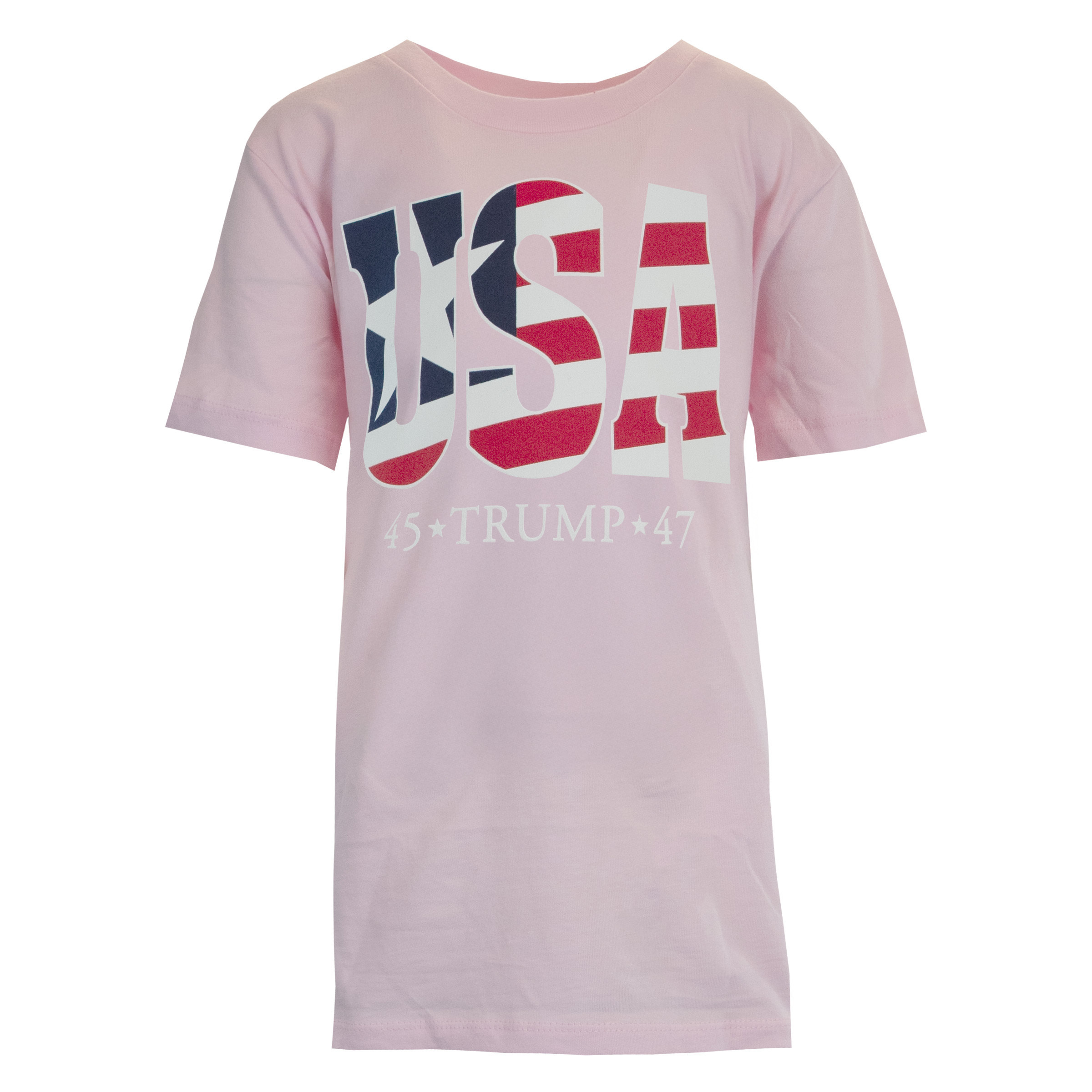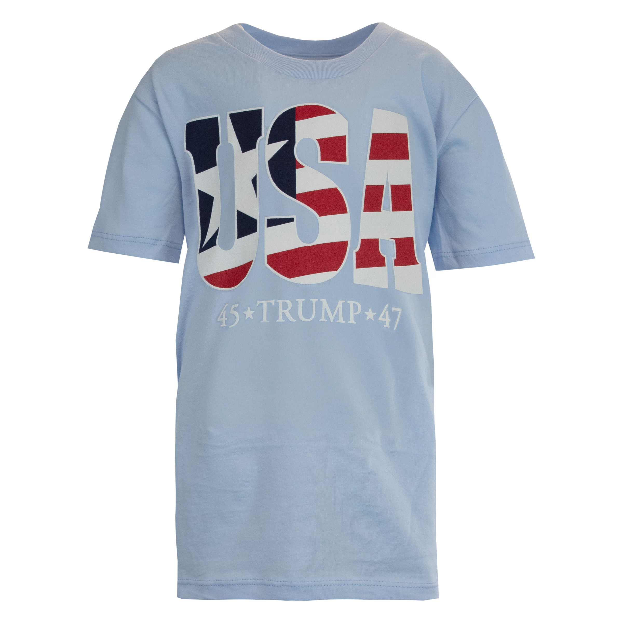 A Stars and Stripes favorite for the kids, this bold graphic is perfect for America’s next generation. Features TRUMP 45-47 special graphic. Help them show their love for America with a fun and patriotic style that will be on trend for years beyond when they outgrow it.