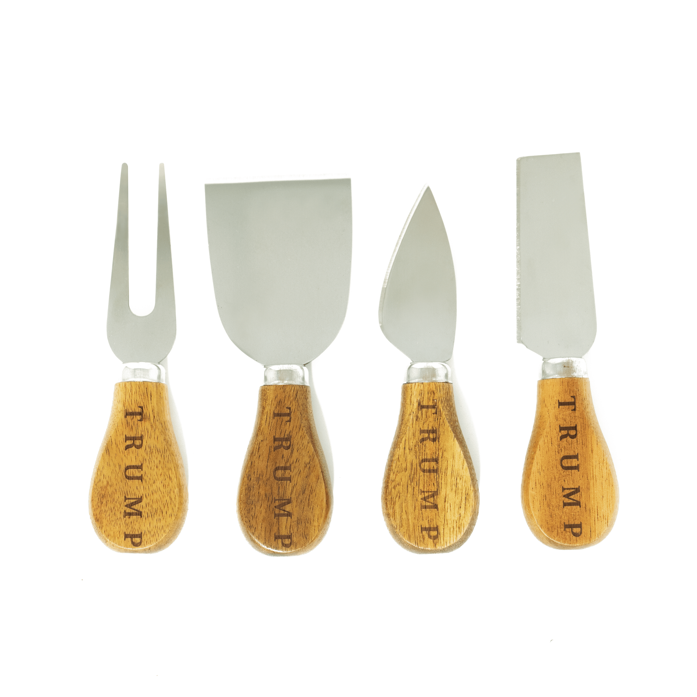 The perfect addition to your Trump cheeseboards, add this 4 piece cheese knife set. The acacia wood handles are engraved with TRUMP and made from high quality stainless steel.