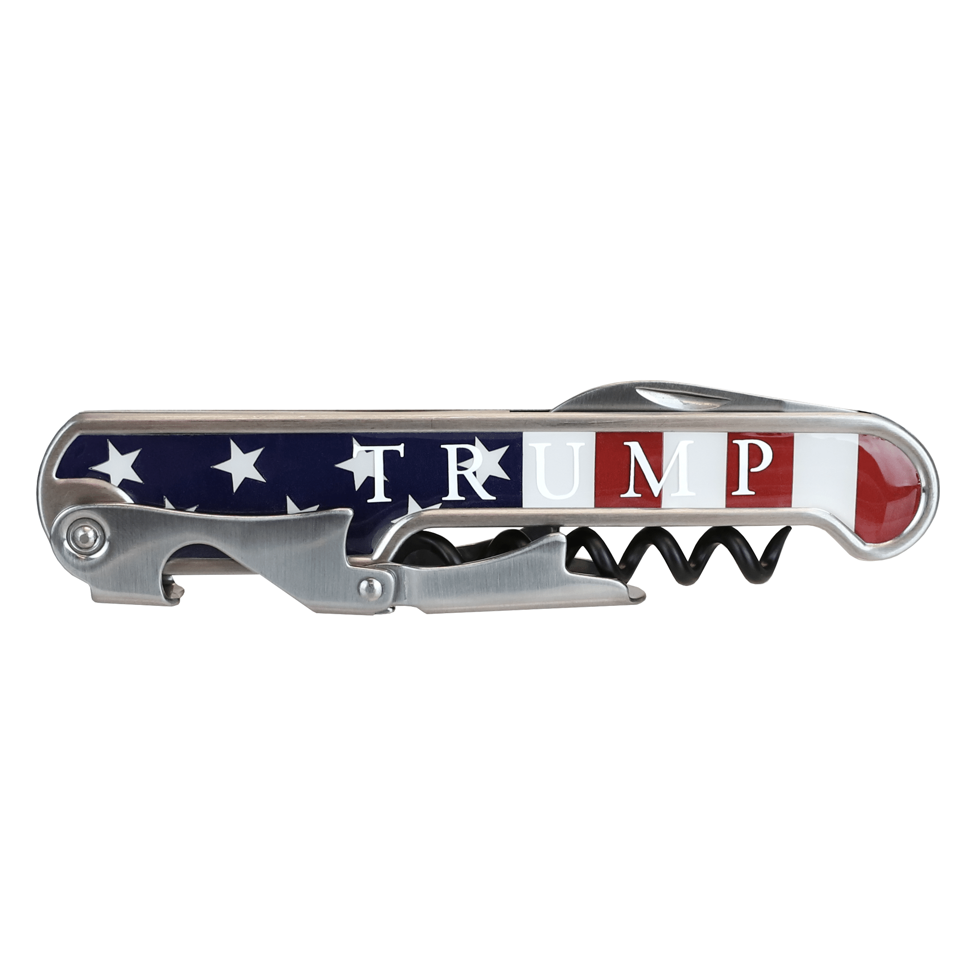 Raise a glass to freedom with this functional and bold American flag corkscrew, featuring the Trump logo across the side. This patriotic corkscrew is perfect for showing off your pride all year long.