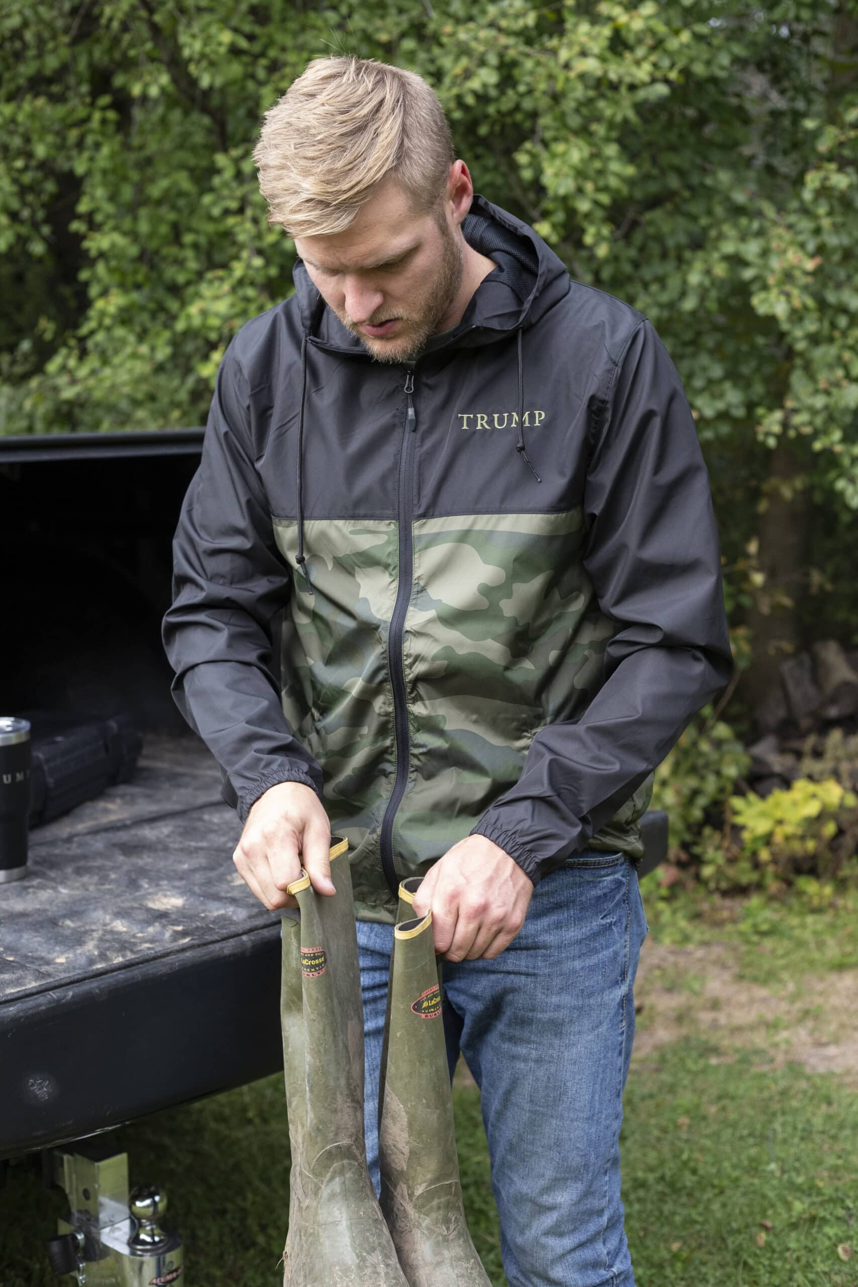 Get ready to brave the wind and the rain with our Camo windbreaker. With the TRUMP logo on the left chest, and camo with sleek black sleeves, you’ll wear this all year long.