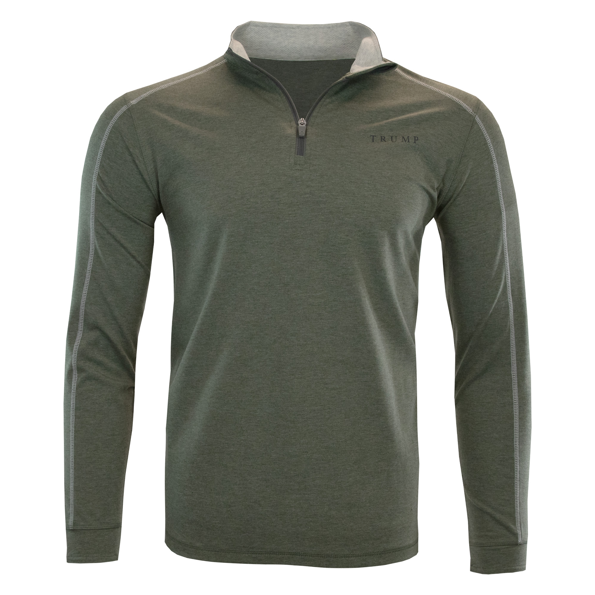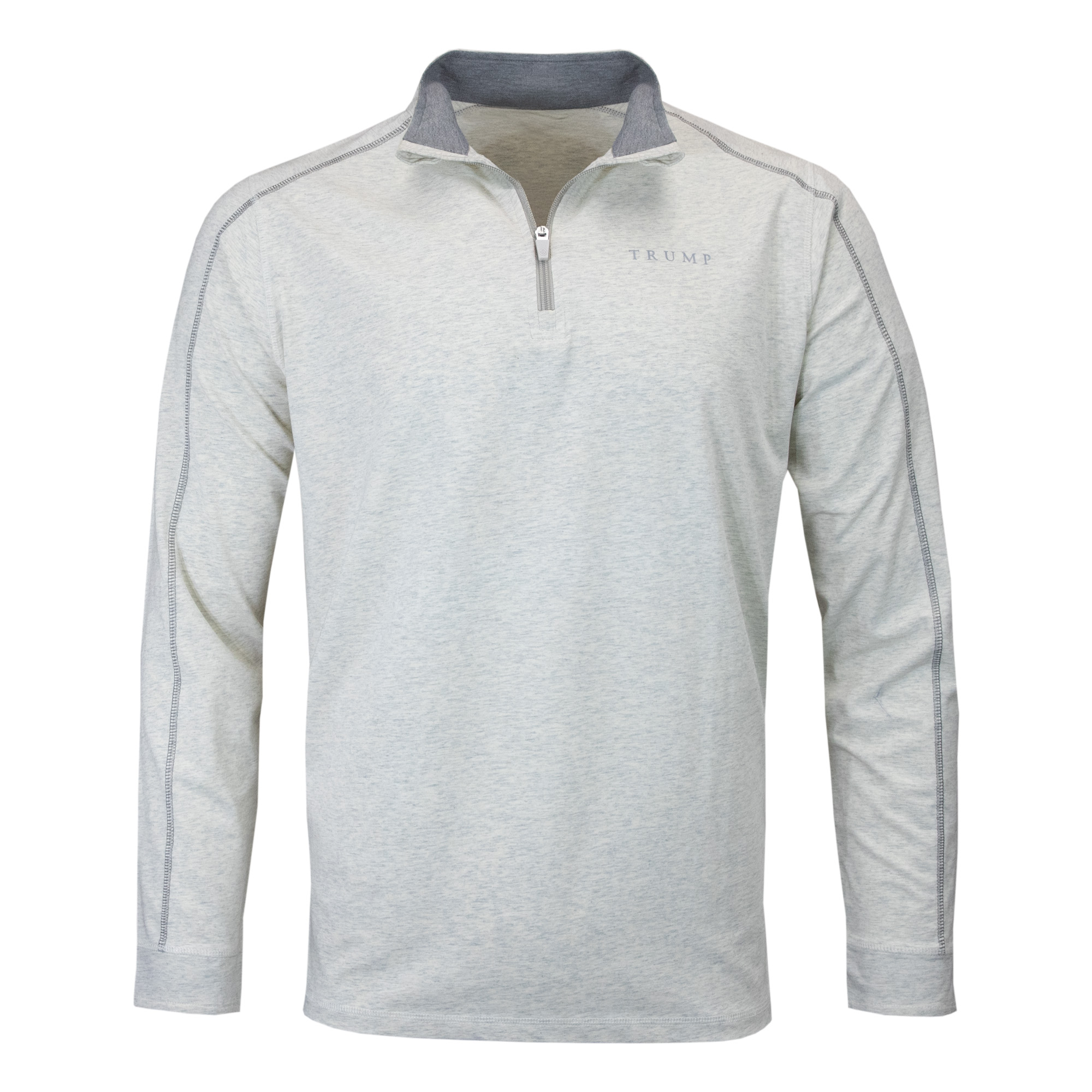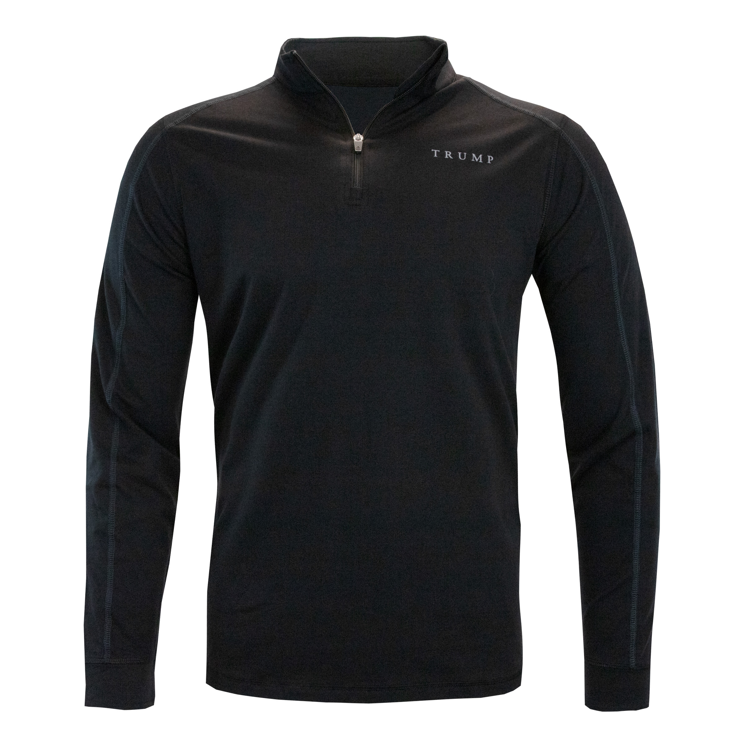 This is a quarter zip you will want in every color! This super lightweight quarter zip has all the performance technology you need when it comes to being moisture wicking and having 4 way stretch, but it also has odor blocking properties and SPF. The versatility makes this a piece you will reach for over and over. Natural bamboo and organic cotton make for a lightweight weight long sleeve. TRUMP logo on left chest.