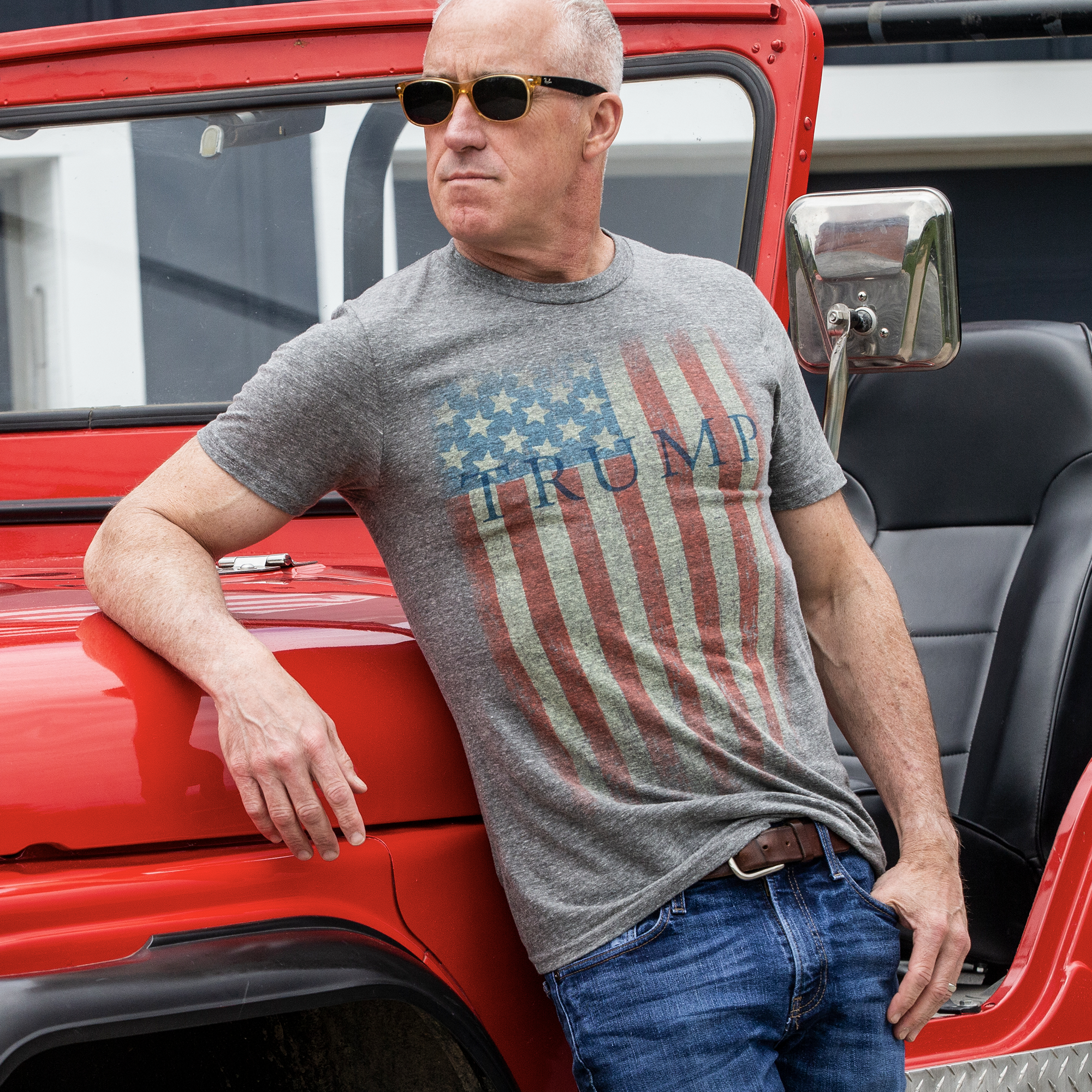 With the American flag prominently displayed on a soft cotton crew-neck, this t-shirt is as stylish as it is comfortable.