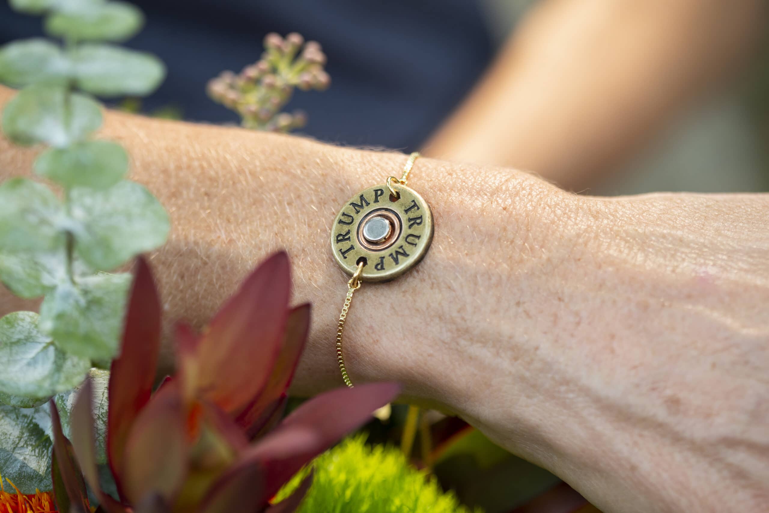 An exquisite addition to your everyday wear, our Trump Concho Chain Bracelet adds a touch of elegance to your favorite looks! Carefully handcrafted in Florida using a delicate brass chain, small clasp closure, and featuring a Trump logo Concho adornment, our Trump Concho Knot Bangle is perfect for layering with other bracelets or simply accessorizing on its own.