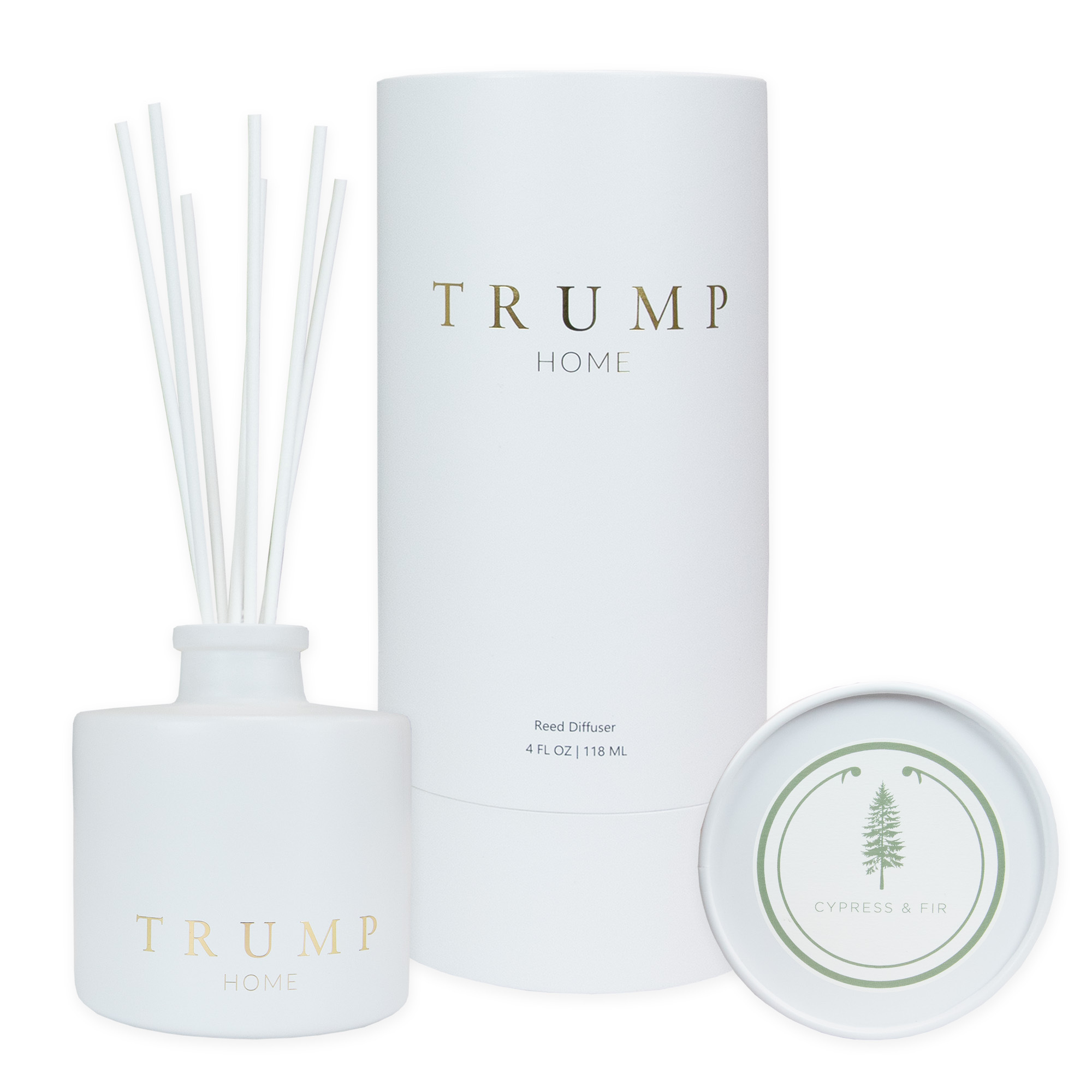 Trump Home reed diffuser infuses the air with your favorite scent, extending the scent all day throughout your space. The diffuser’s grey reeds absorb the oil and release the aroma gradually for the ideal level of scent. To refresh the fragrance, simply jiggle the reeds, or take them out and put them back in upside down. Packaged in a crisp white gift box, the matching glass vessel has a clean, crisp look that brightens your coffee table, dresser or mantel.