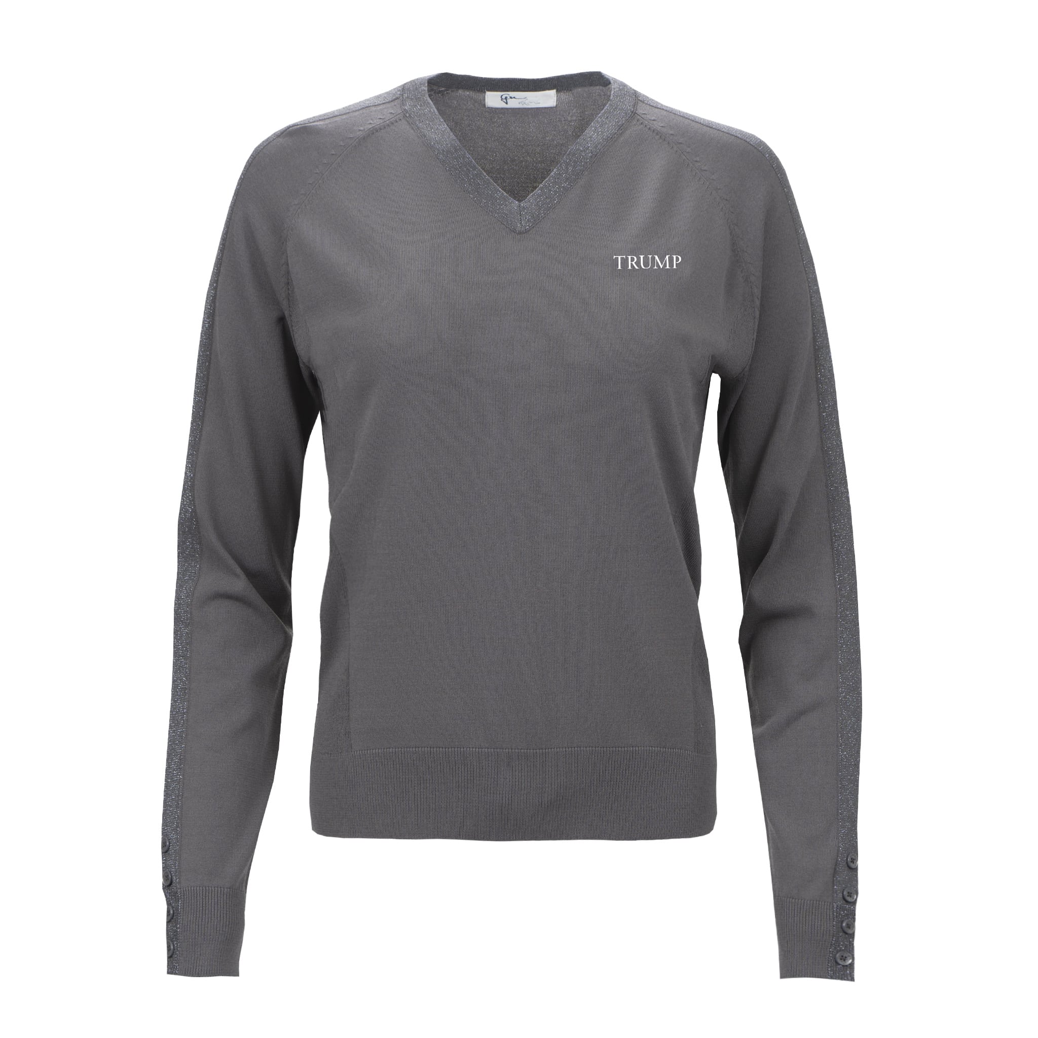 Sophisticated elegance is the name of the game with the latest lightweight knit v-neck sweater from Greg Norman. Perfect on its own or layered over a button down, this performance knit sweater is the optimal amount of extra warmth your fall wardrobe is calling for. Complete with enamel croc skin buttons at cuff and TRUMP embroidered logo on left chest.
