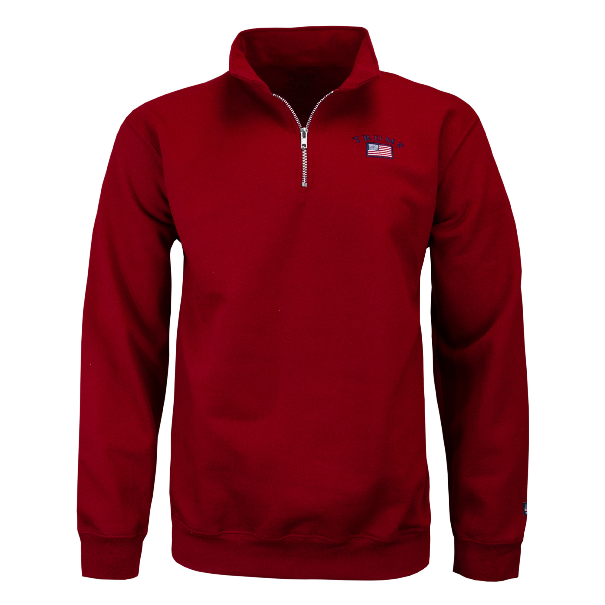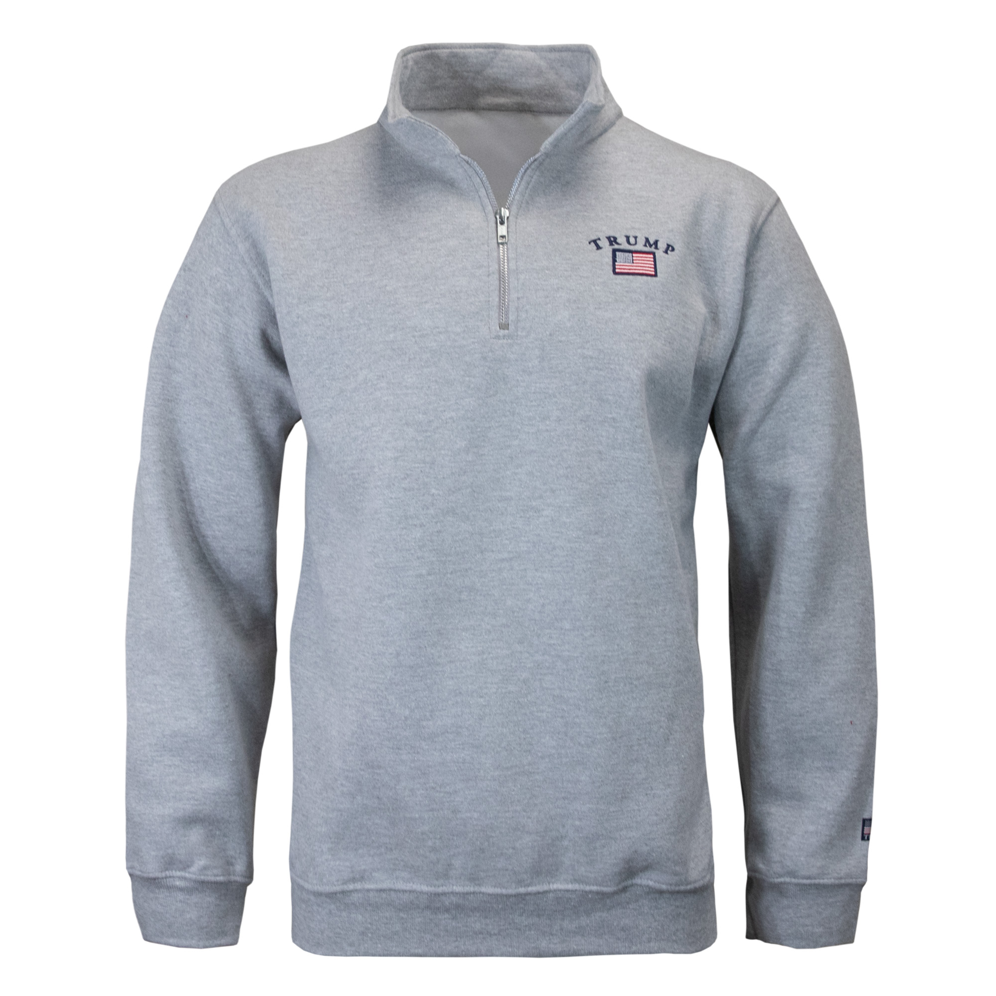 Elevate your everyday look with our Trump Embroidered Flag Arc 1/4 Zip. Designed with bold arc text and a detailed flag emblem on the left chest, this 1/4 zip is the perfect balance between timeless and modern.
