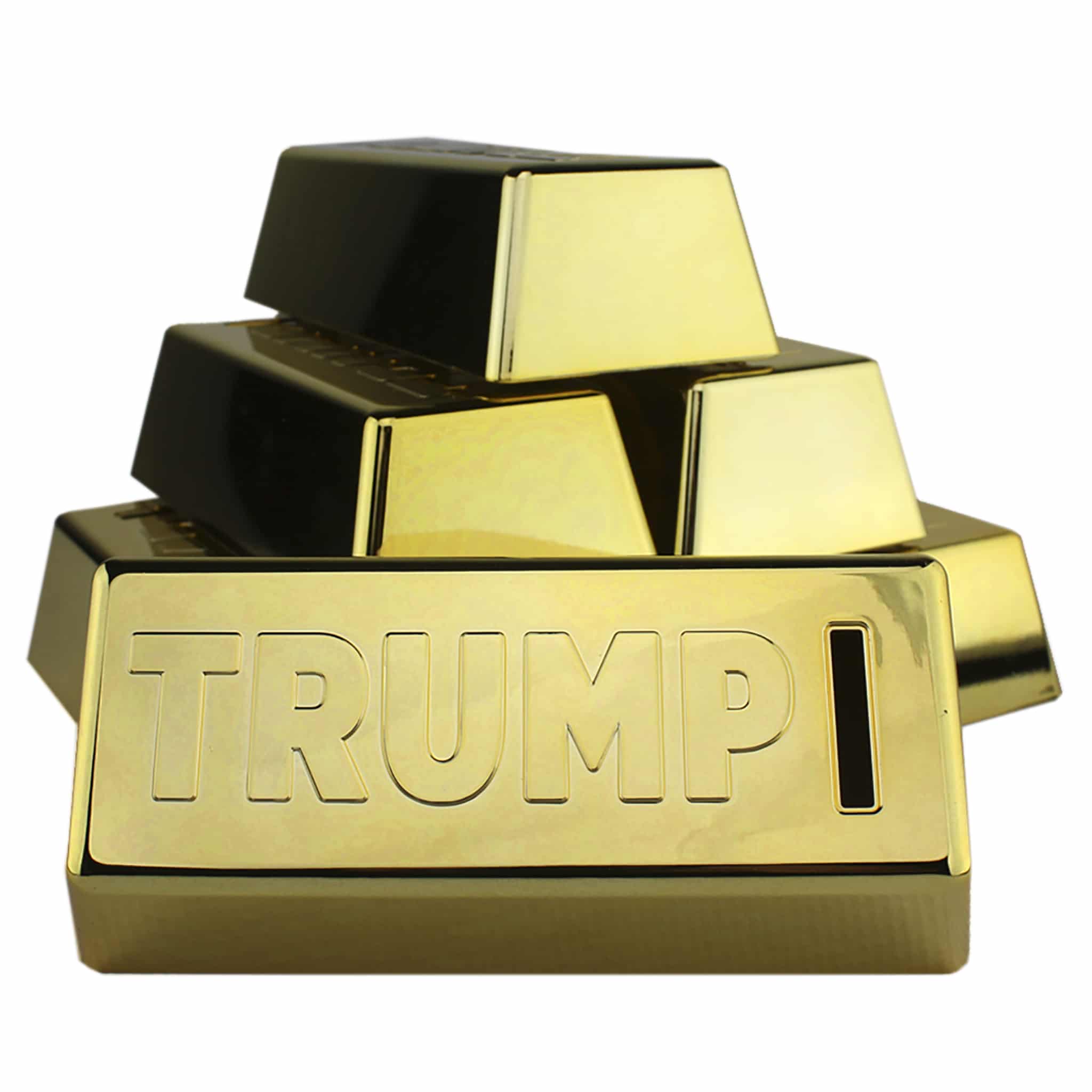 Our Trump coin bank is modeled after a real gold bullion and is not only a collector’s item, but will store your spare change perfect for a rainy day. A fun statement piece that is unique and sure to attract notice.