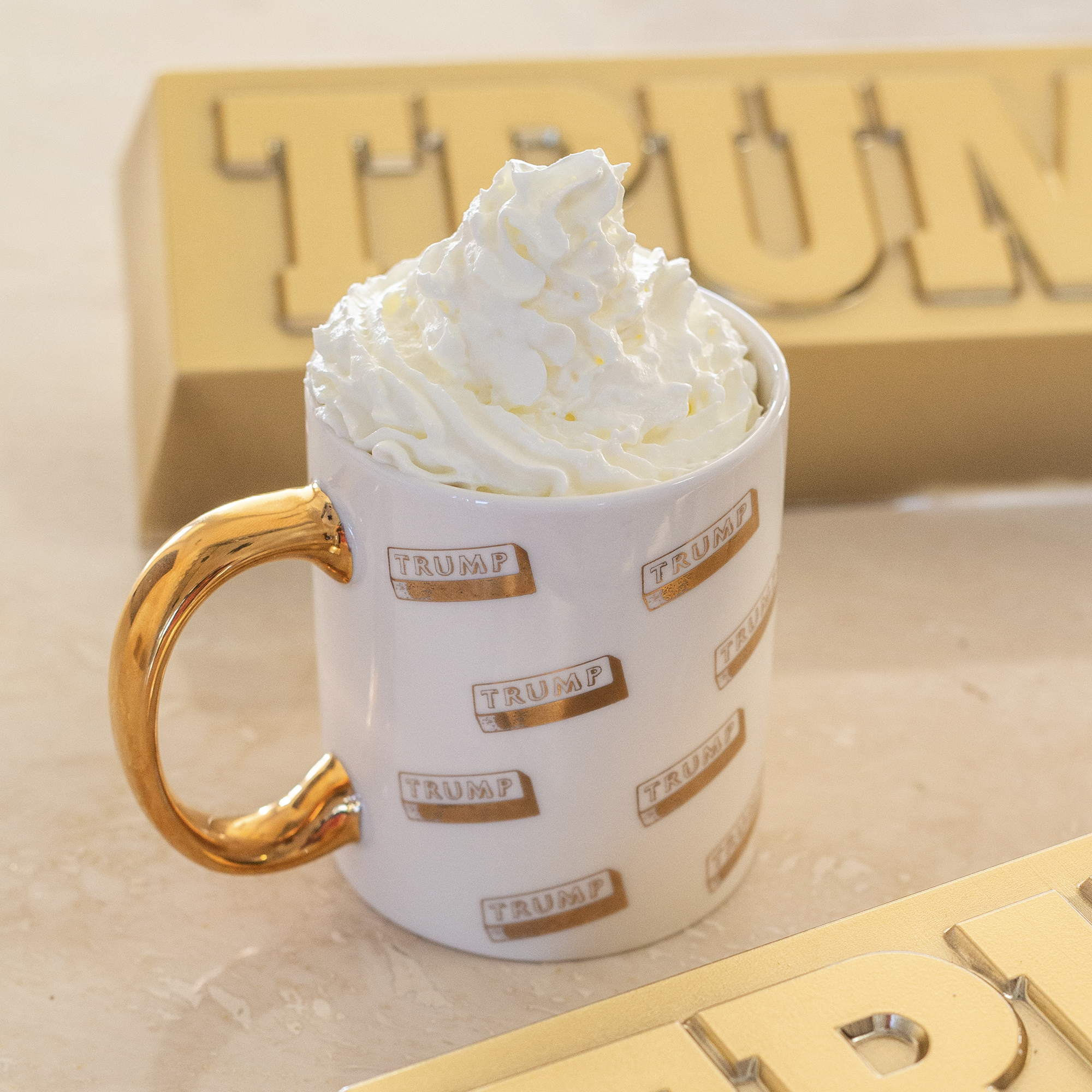 Enjoy a steaming cup of the Trump Gold Roast Coffee in none other than the Gold Bar Mug! Dishwasher safe metallic gold accents make for a stunning way to start the morning.