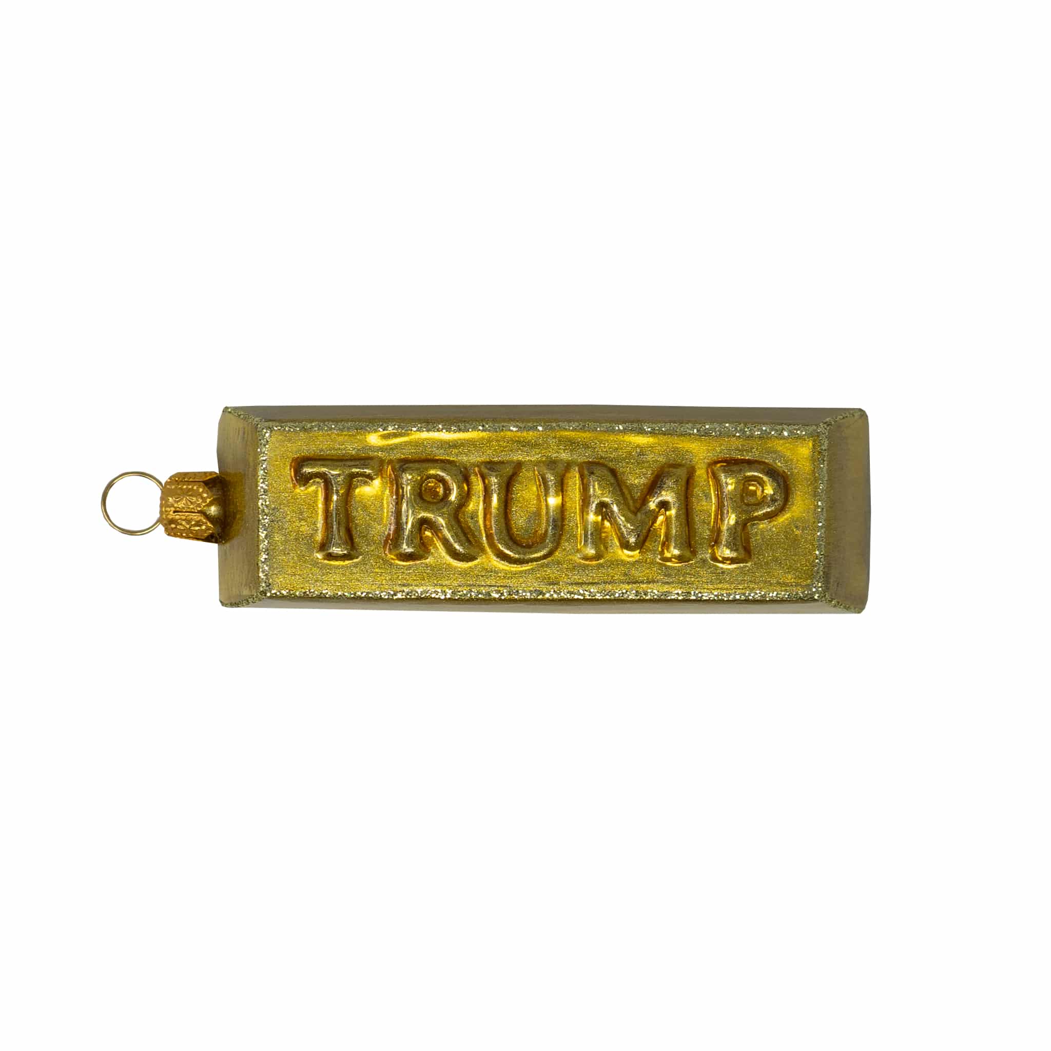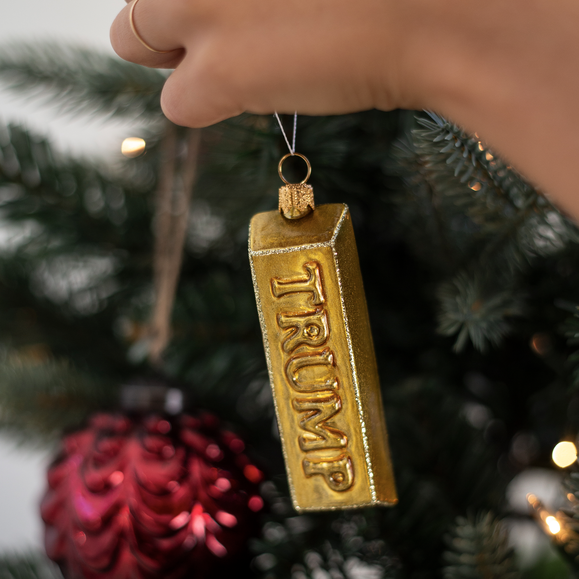 Bring the bling to your tree this holiday season. The perfect gift for any Trump enthusiast, or yourself. The gold bar is a true symbol of the Trump brand and a fun ornament for all.