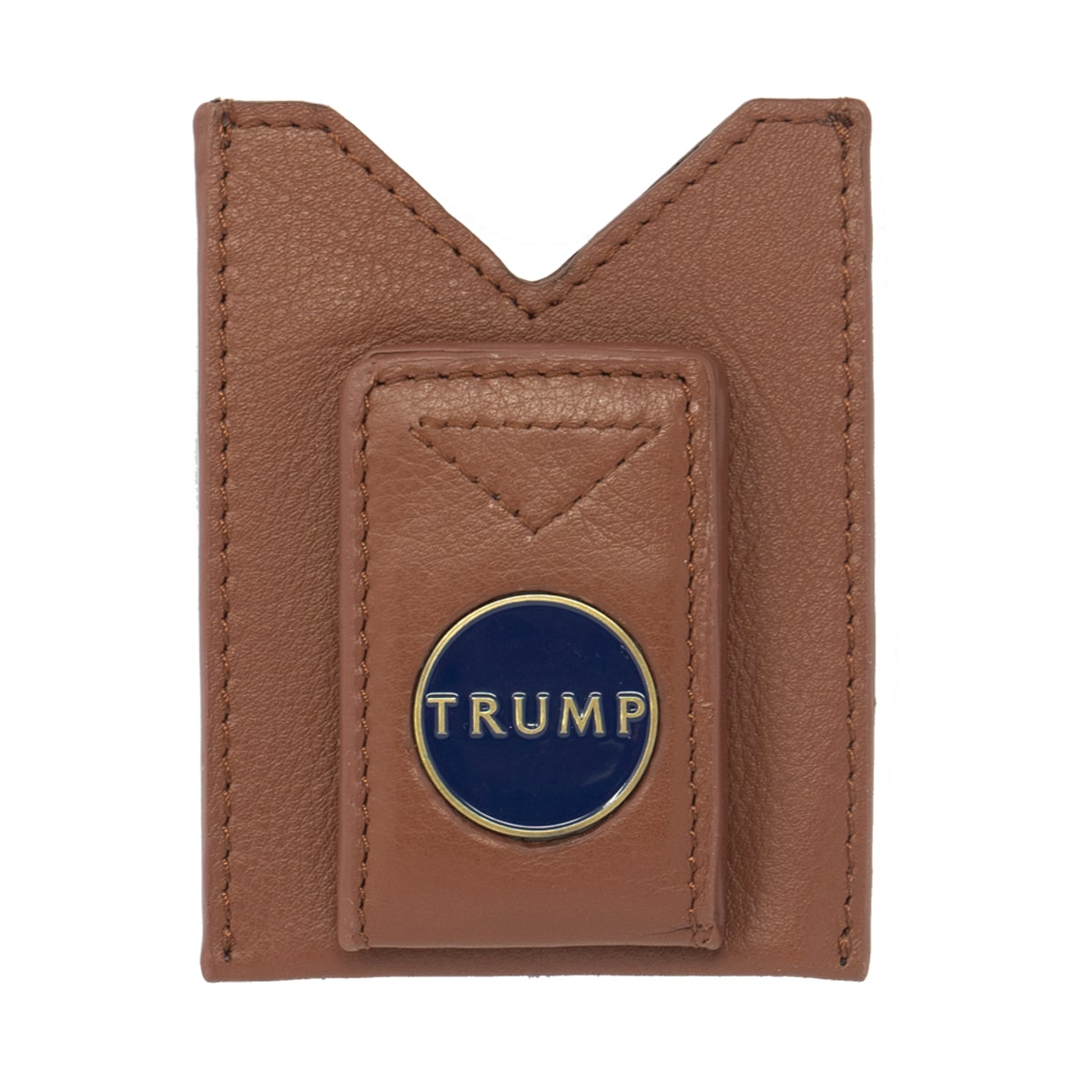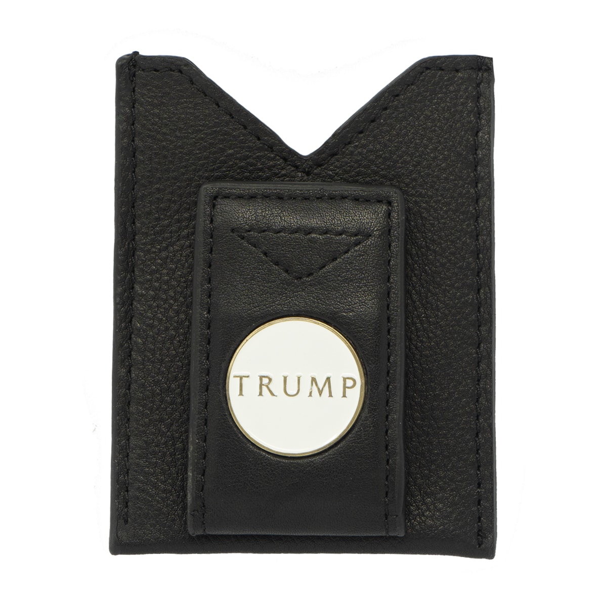 This slim credit card holder is a great wallet for storing your credit cards and ID. With a magnetic closure featuring the Trump logo, this holder is sleek and stylish.