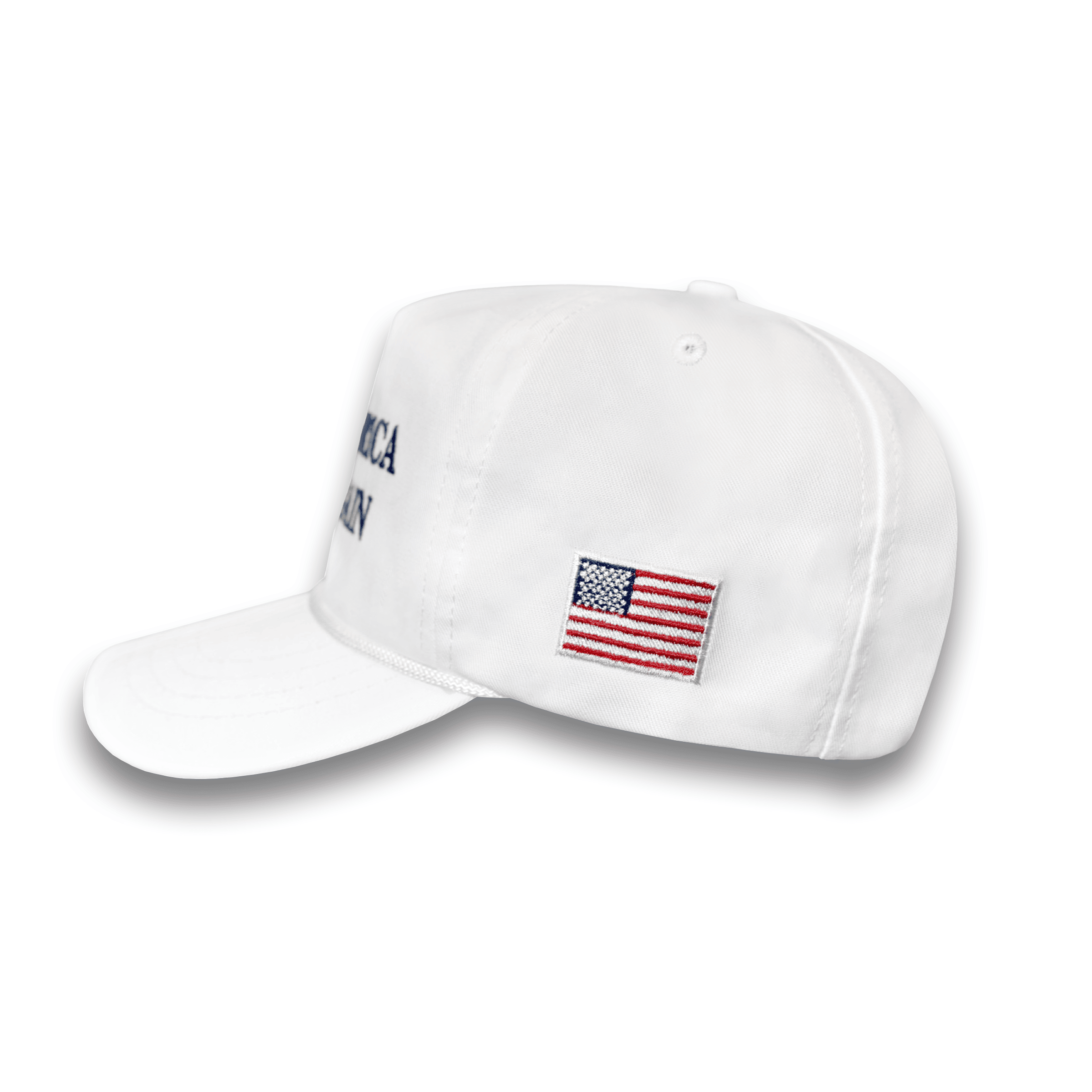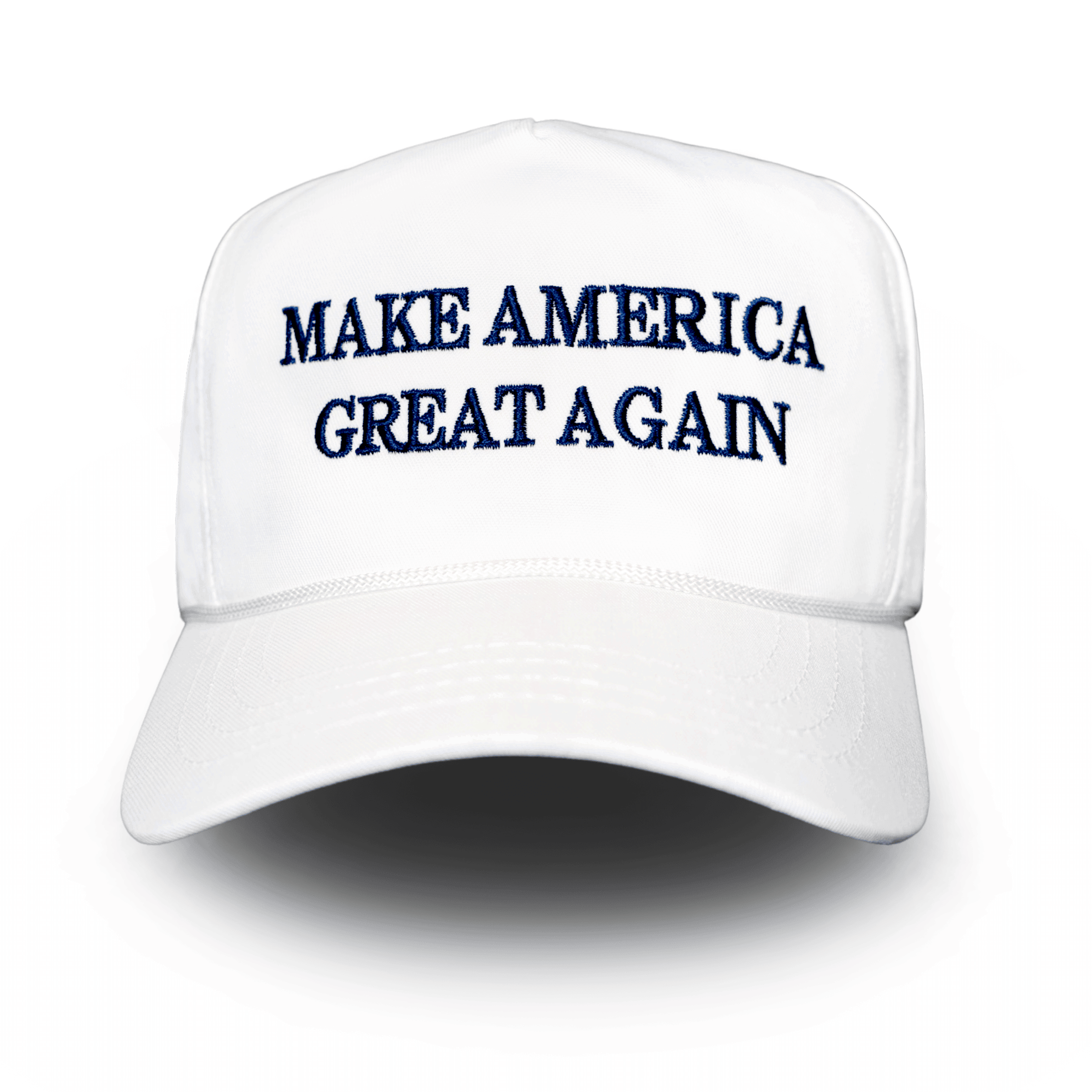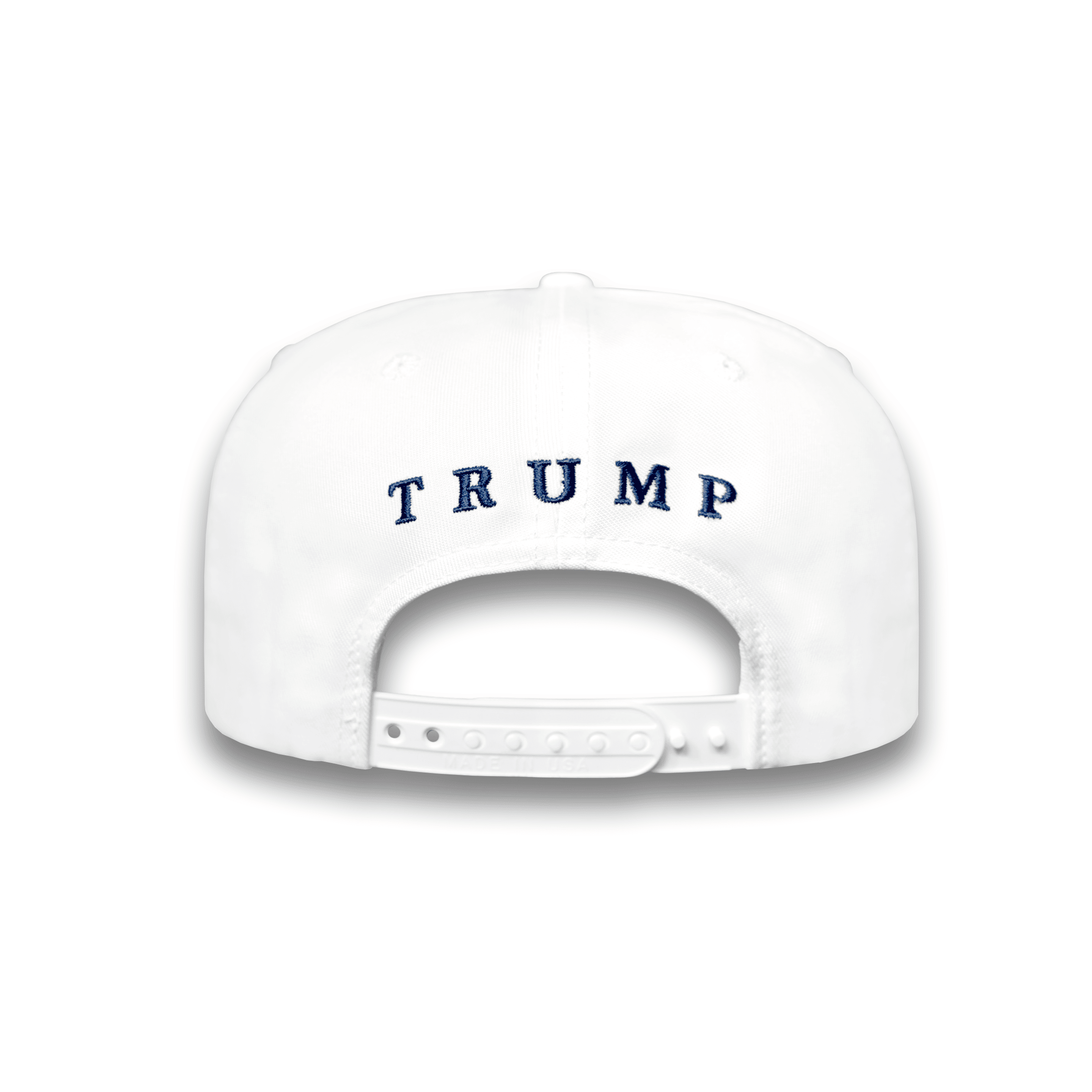 Take home a classic now in white with navy embroidery! Our iconic Make America Great Again Hat makes a bold wardrobe statement like no other. Featuring our beautiful American Flag and our signature Trump logo, each cap has been crafted with care to become the perfect addition to your collection!