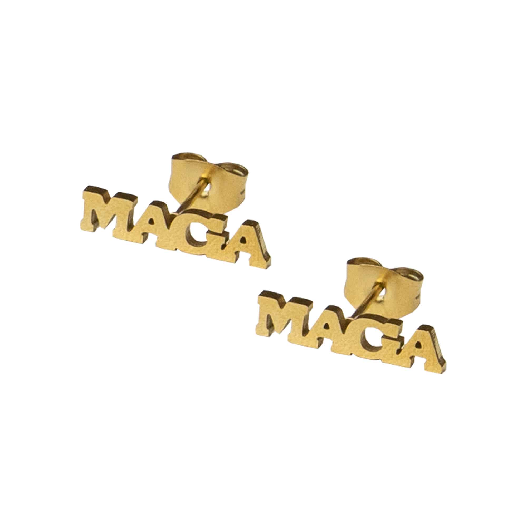 Bar earrings are all the rage, and with the summer of making America great in full swing, add this to your earring line up! MAGA in all caps from left to right is the perfect stud to add to your ear.