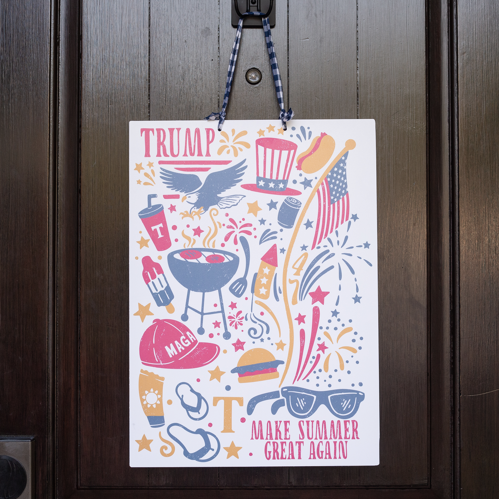 Show your patriotic spirit with our Make Summer Great Again door hanger. Featuring the Make Summer Great Again logo and proudly made in America, it’s as stylish as it is festive.