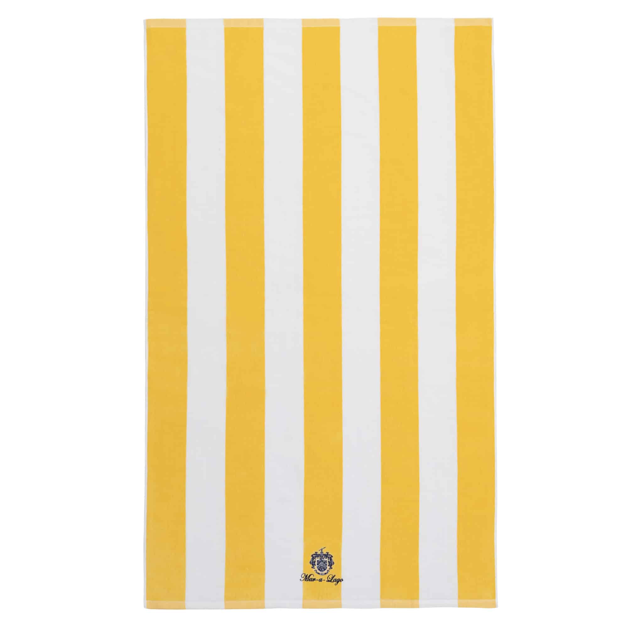 Wrap up poolside or on the beach with a fluffy and cozy beach towel inspired by the luxurious experience at the Mar-a-Lago Beach Club. The classic yellow and gold is a Mar-a-Lago staple, and the classic MAL logo.