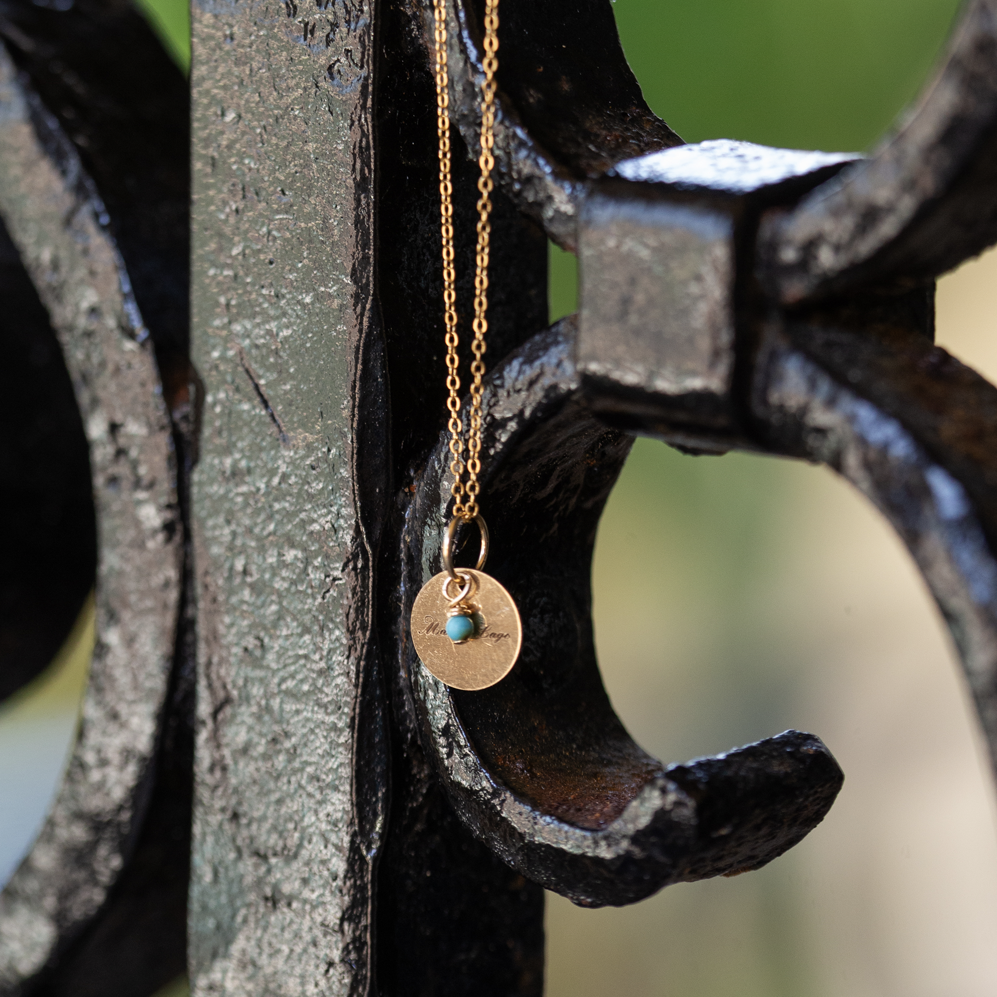 • 14k gold-filled MAL disk drop with natural turquoise gemstone