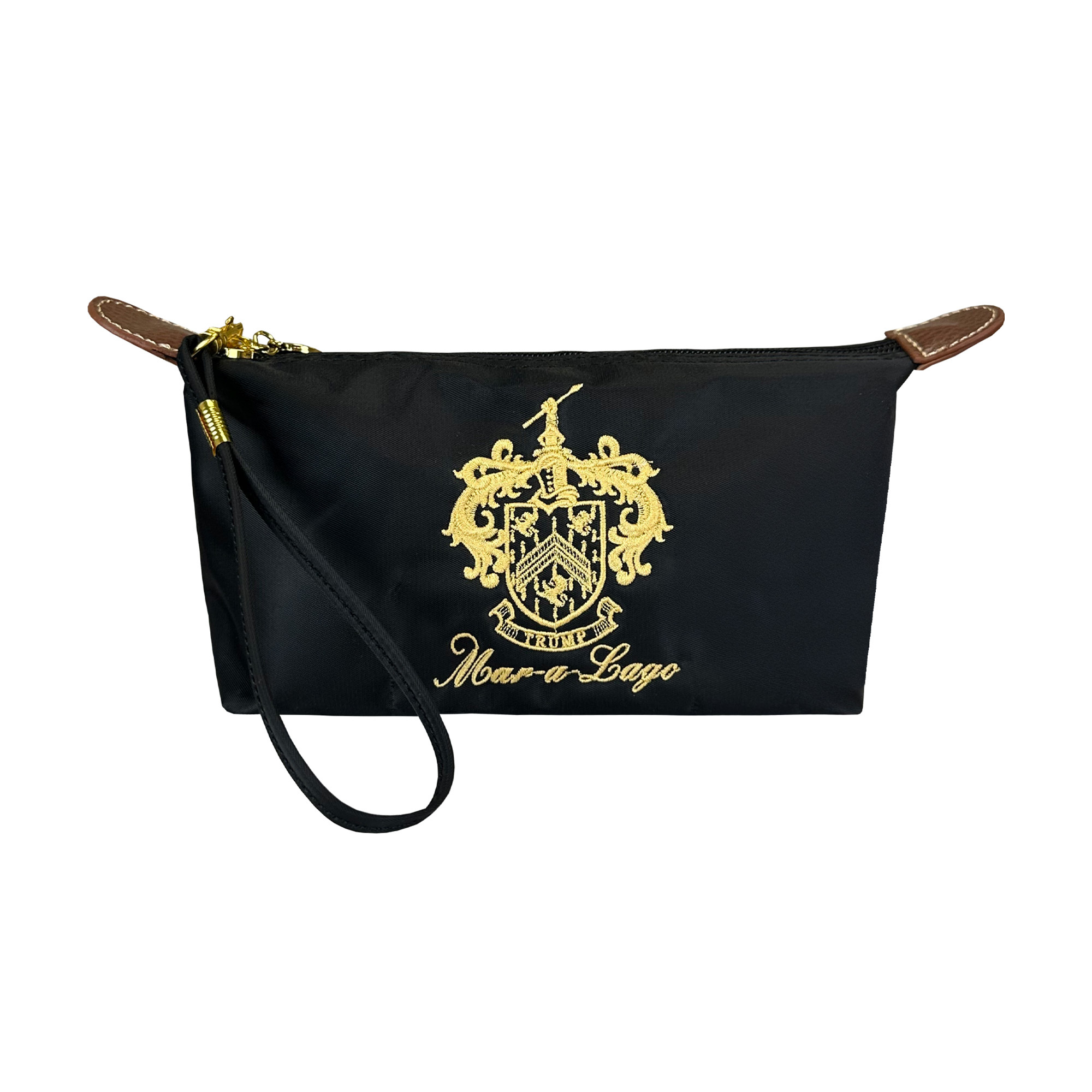 Gear up in style with the nylon Mar-a-Lago pochette. Zippered closure with the exclusive Mar-a-Lago crest logo.