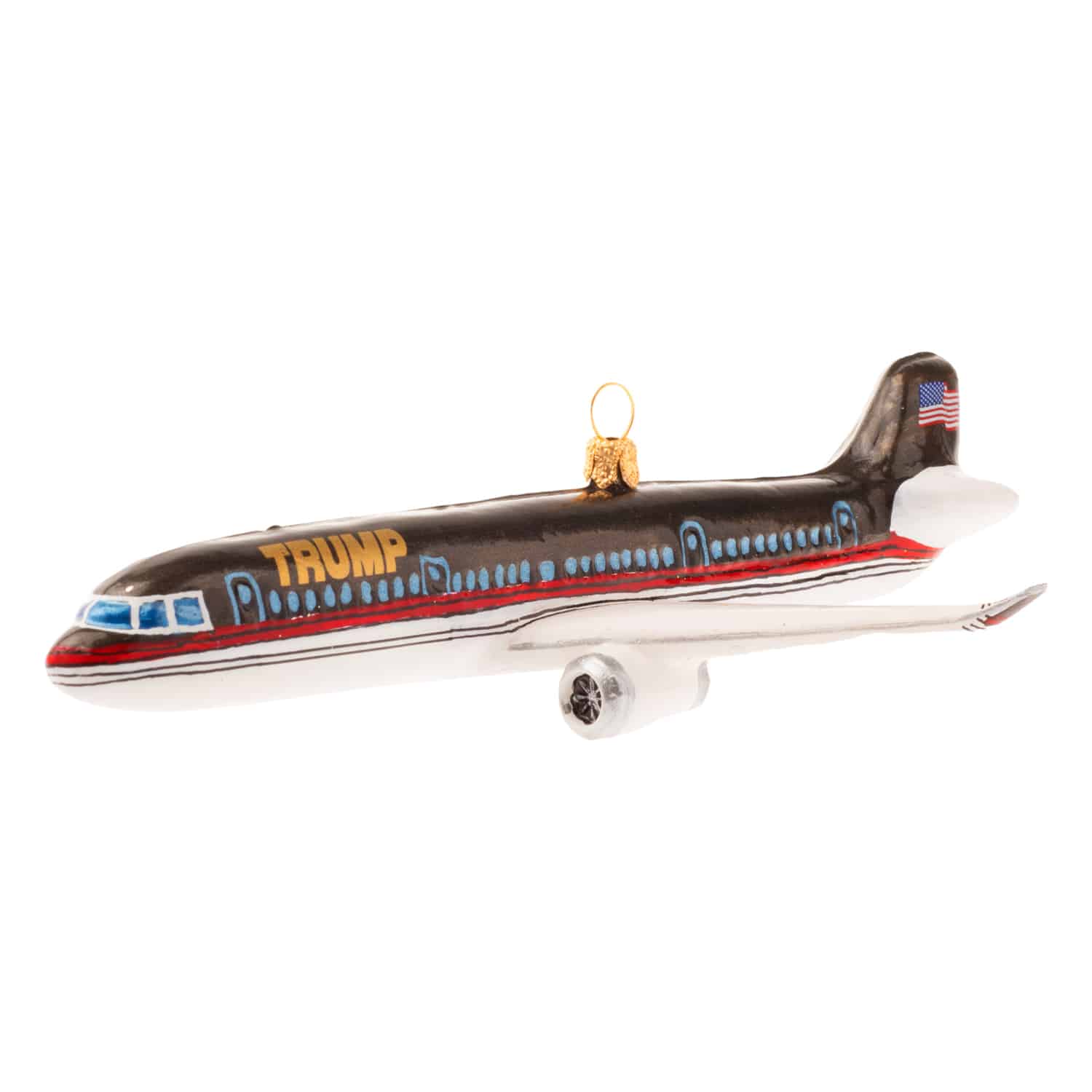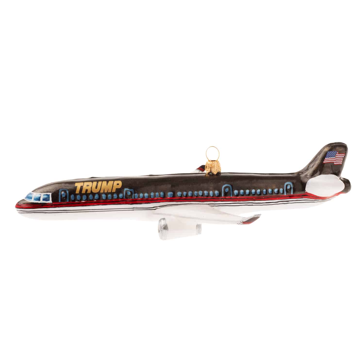 NEW and improved just like the Trump 757 Airplane – we’ve updated the look to match the new deatils, like the American flag on the tail. Carefully crafted and painted with exceptional detail, each ornament has been modeled after the famous Trump 757. Flown by the legendary Chief Pilot, John Dukin, for over 10 years, the Trump 757 has landed in destinations all over the world. Make its next stop into your family’s home.