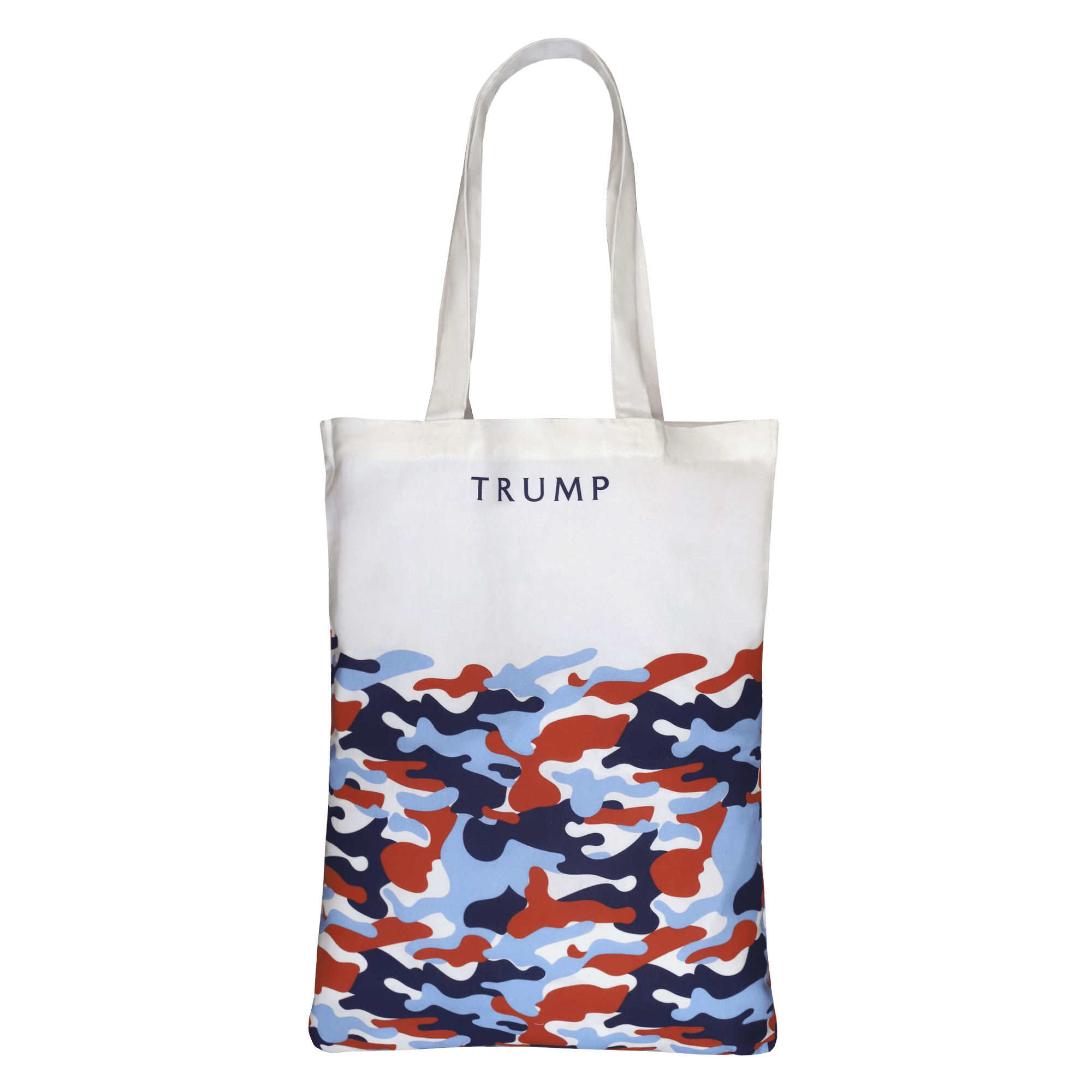 Organize and carry your on the go needs with this limited edition Fall 2024 red, white, and blue camo tote bag. Made of durable cotton, use this as a book bag, a lunch sack, or a grocery bag.