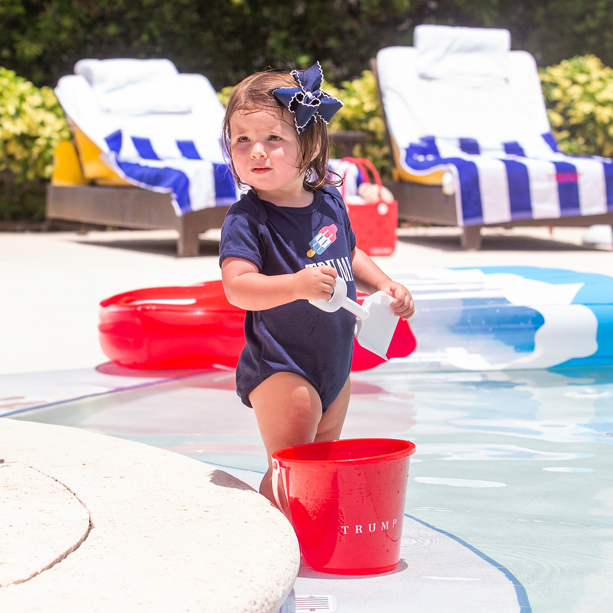 A Patriotic pail does exist! Pick up this kid friendly sandbox set in blue or red for your little adventurers. Get ready to build a big sandcastle!