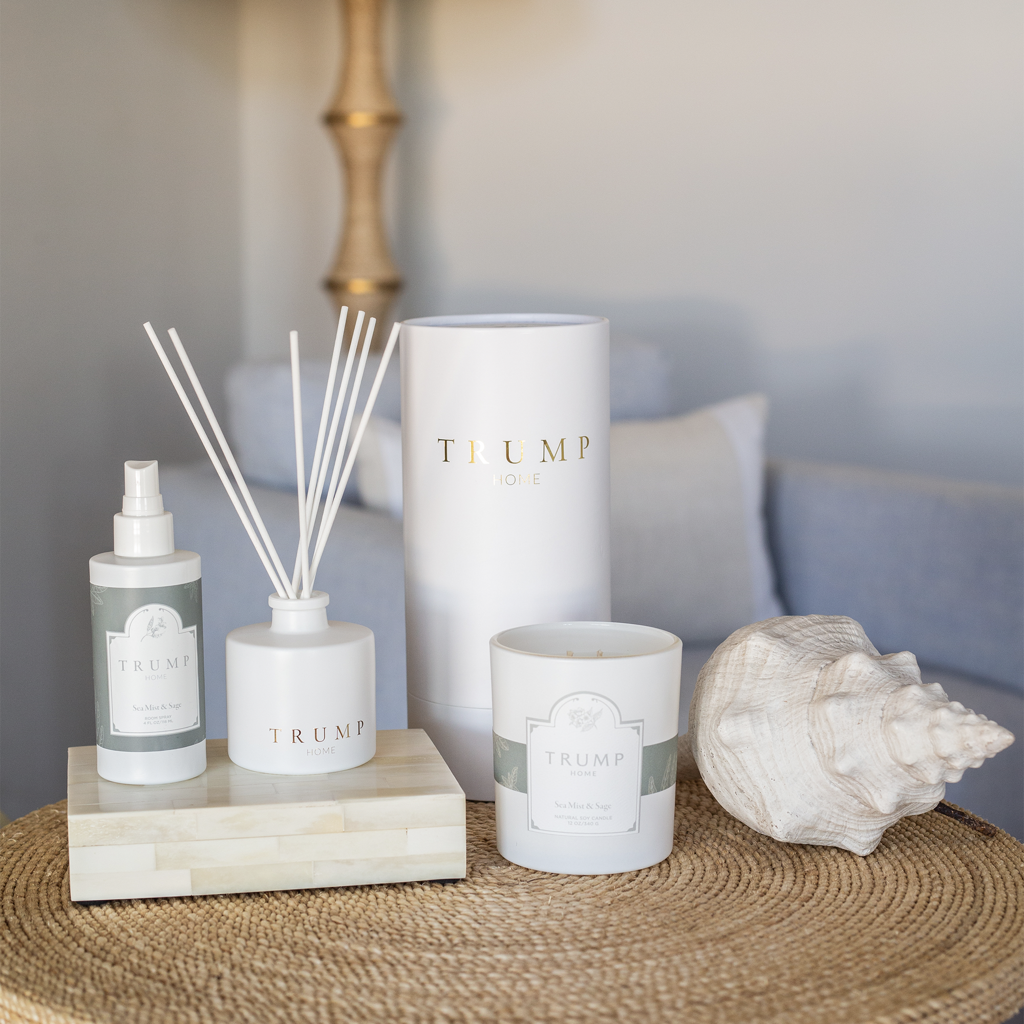 Trump Home reed diffuser infuses the air with your favorite scent, extending the scent all day throughout your space. The diffuser’s grey reeds absorb the oil and release the aroma gradually for the ideal level of scent. To refresh the fragrance, simply jiggle the reeds, or take them out and put them back in upside down. Packaged in a crisp white gift box, the matching glass vessel has a clean, crisp look that brightens your coffee table, dresser or mantel.