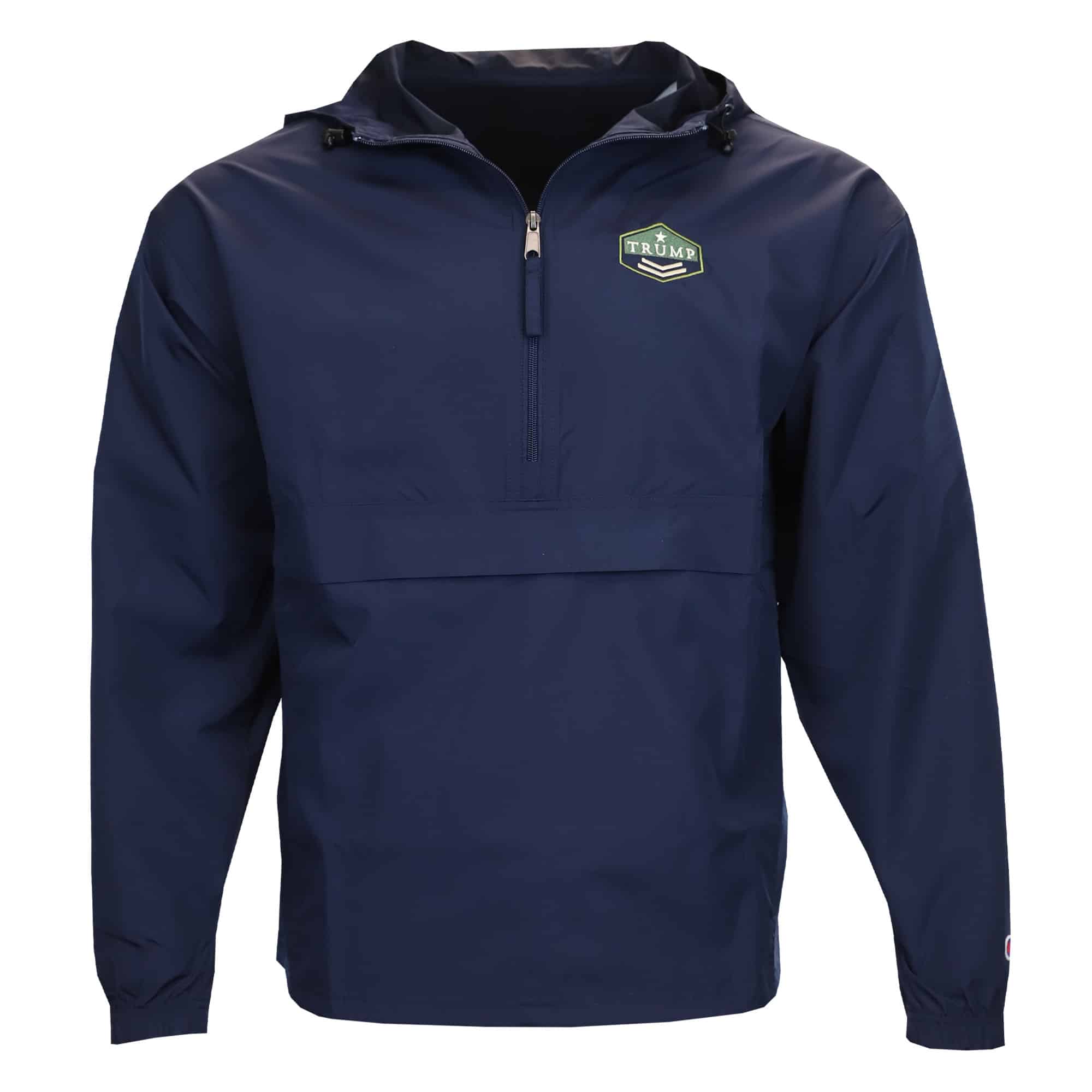 Brave the elements in style with this pullover windbreaker. Features a 1/4 zip closure and kangaroo pocket to store your phone or keep your hands warm. Features a hood to pull up when rain strikes. Perfect for an active lifestyle!