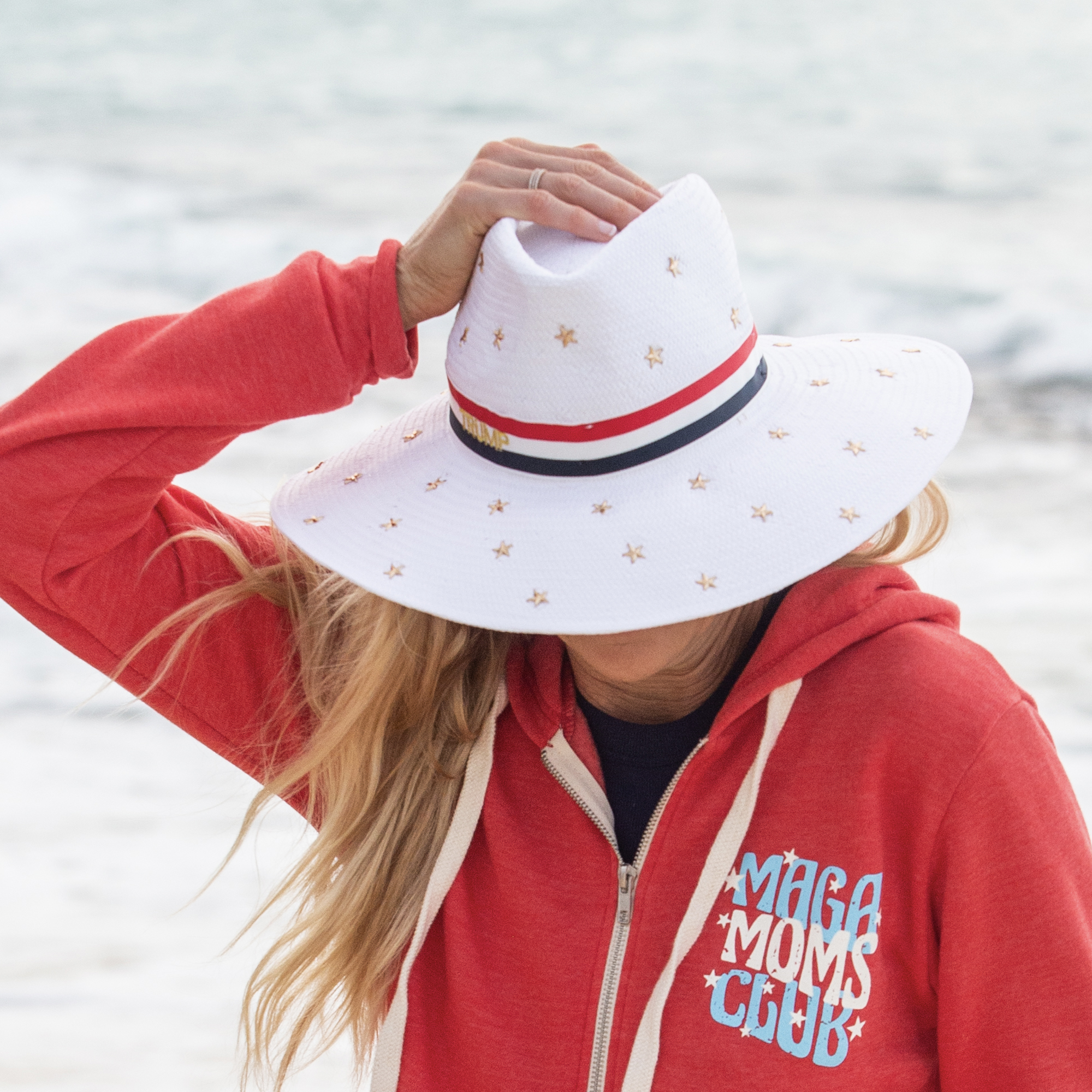 This hat will have you made in the shade! This lightweight coated straw hat features a star studded treatment and red, white, and blue band. TRUMP embroidered on band. Adjustable inner band allows for the perfect fit. Travel friendly and perfect for summer sun!