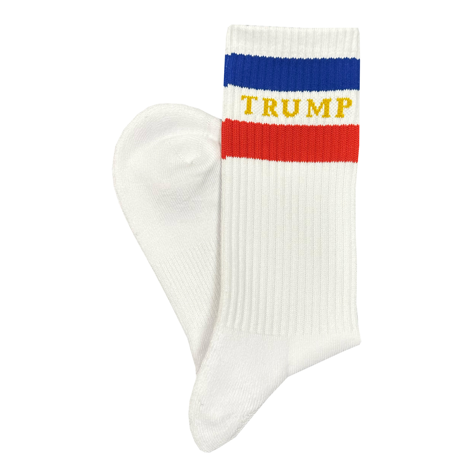 This is no ordinary tube sock! Show your patriotism with the latest TRUMP crew socks. Comfortable cotton and patriotic striping makes these a very fashionable statement.