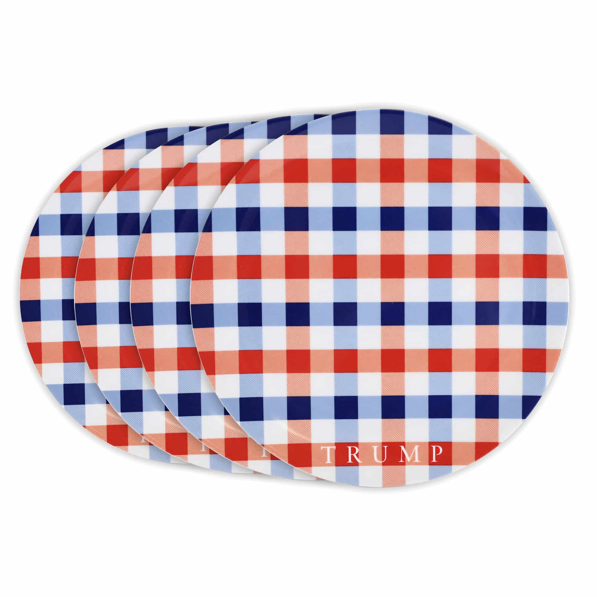 Get ready for a summer full of picnics, BBQ’s and more with the set of 4 Trump red, white, and blue melamine plates. Perfect for entertaining and passing small plates, but also ideal for outdoor dining, poolside snacking, or boat adventures, these plates are ready to travel and easy to care for!