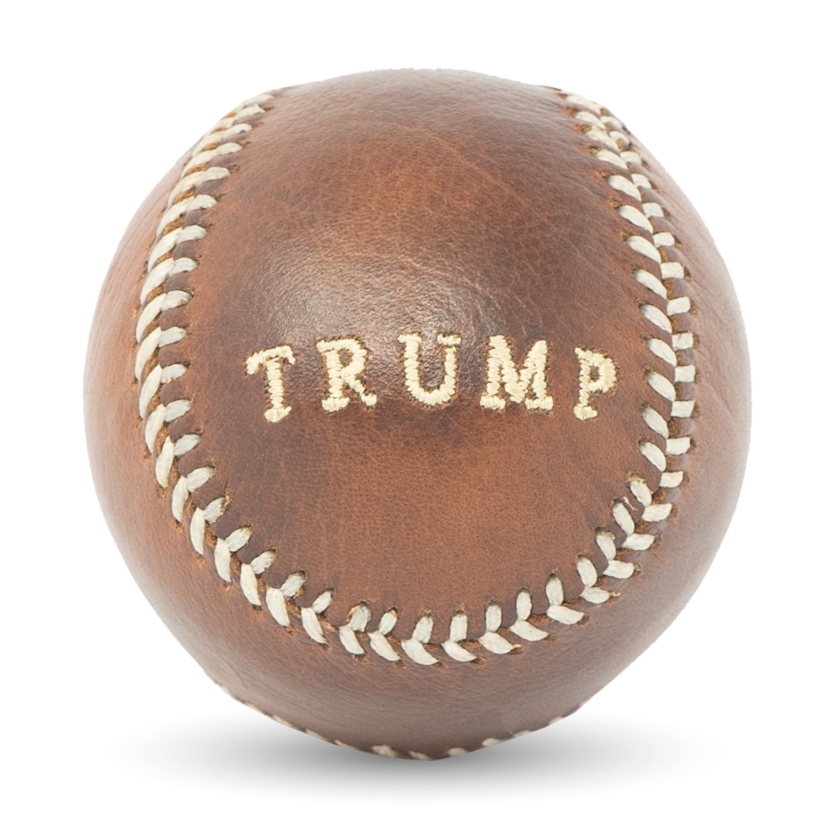 It’s a home run with our classic leather baseball. Hand stitched with a nostalgic design, our Trump Baseball will take you back to long summers. Display as the centerpiece of your collection or purchase for someone special.