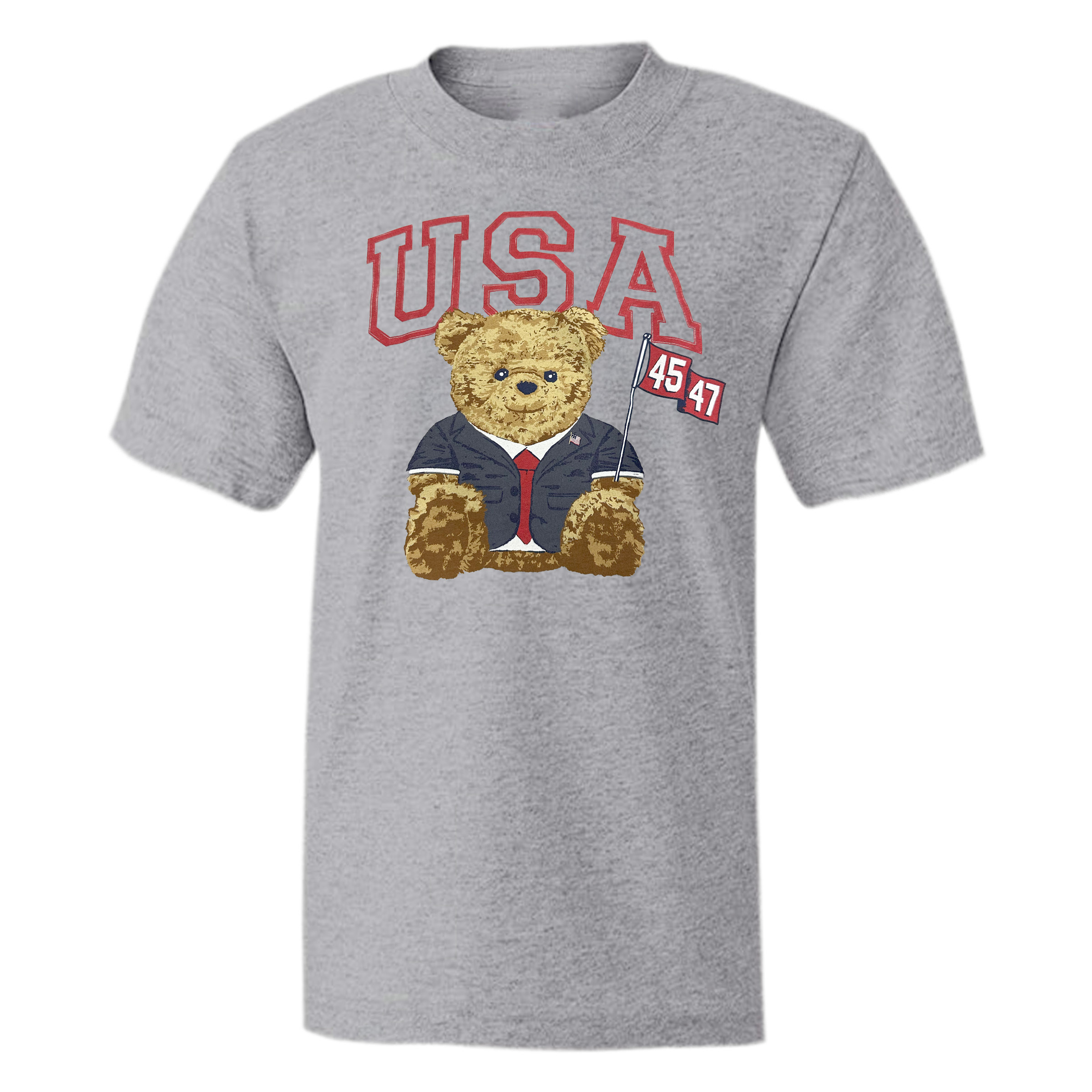 The latest Boardroom Bear youth tee featuring America’s Bear all dressed up for the office is here!