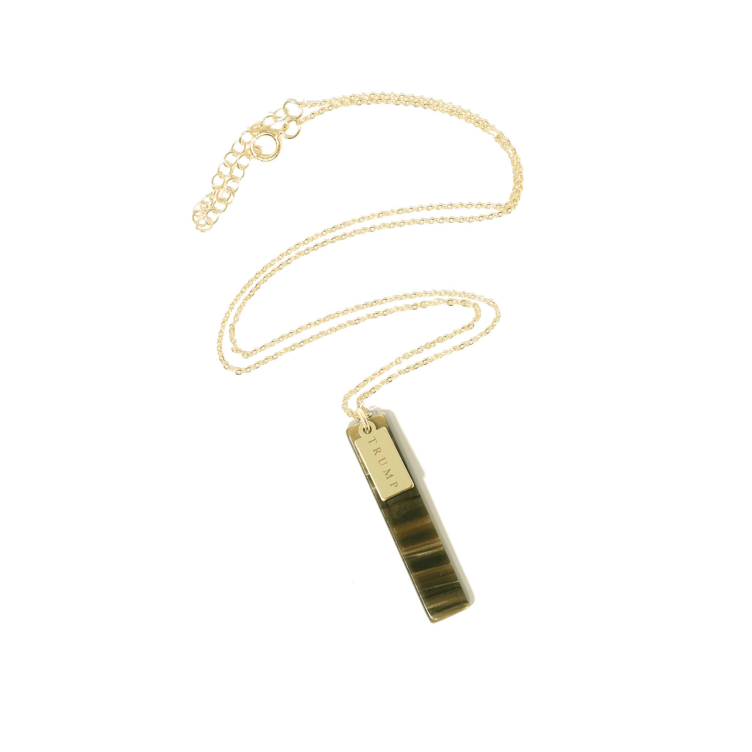 A Trump Tag necklace from Tracy Savage jewelry is a great way to wear the fall trend of military camo but with an elevated edge. The marbled dark brown tag is inspired by nature’s camoflage and the gold filled TRUMP tag rests beautifully on it for a fall themed look. Perfect with a jean jacket or white button down.