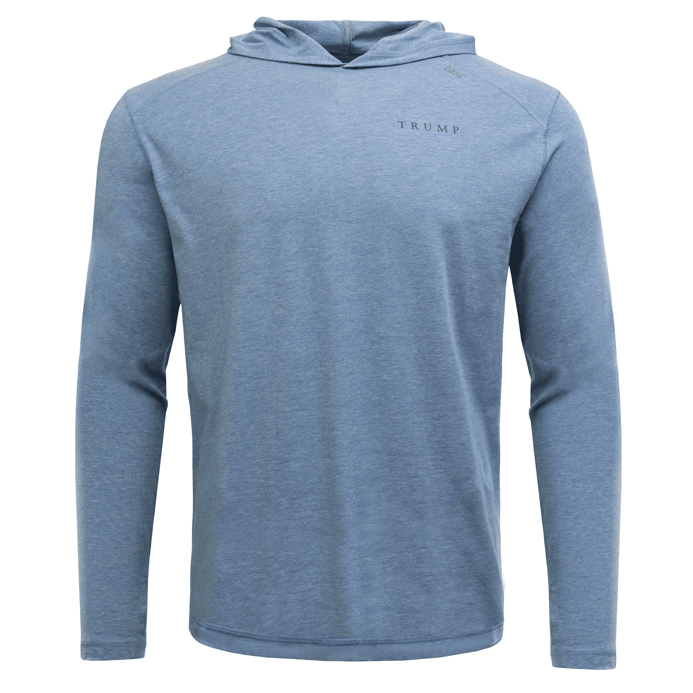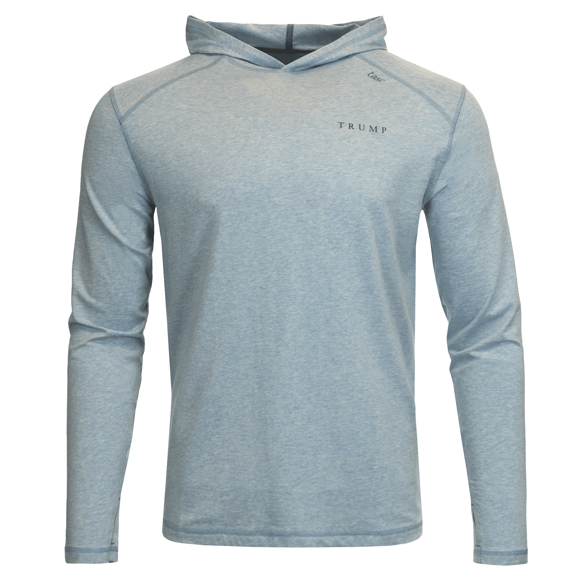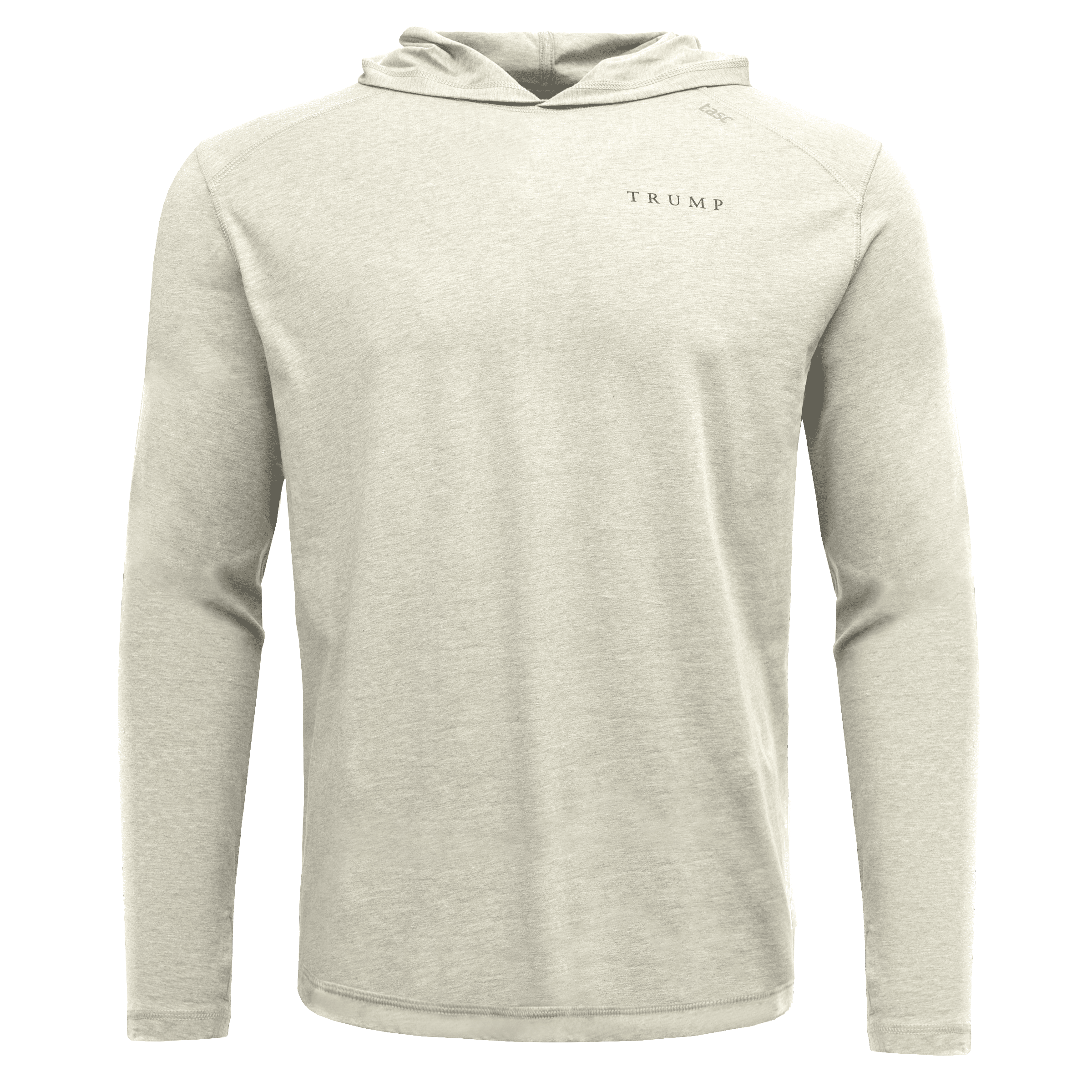 Your new best layering piece has arrived! This super lightweight hoodie has all the performance technology you need when it comes to being moisture-wicking and having 4-way stretch, but it also has odor-blocking properties and SPF. Take it to the beach, on the boat, or for an early morning jog. Natural bamboo and organic cotton make for a t-shirt-weight long sleeve. TRUMP logo on left chest.
