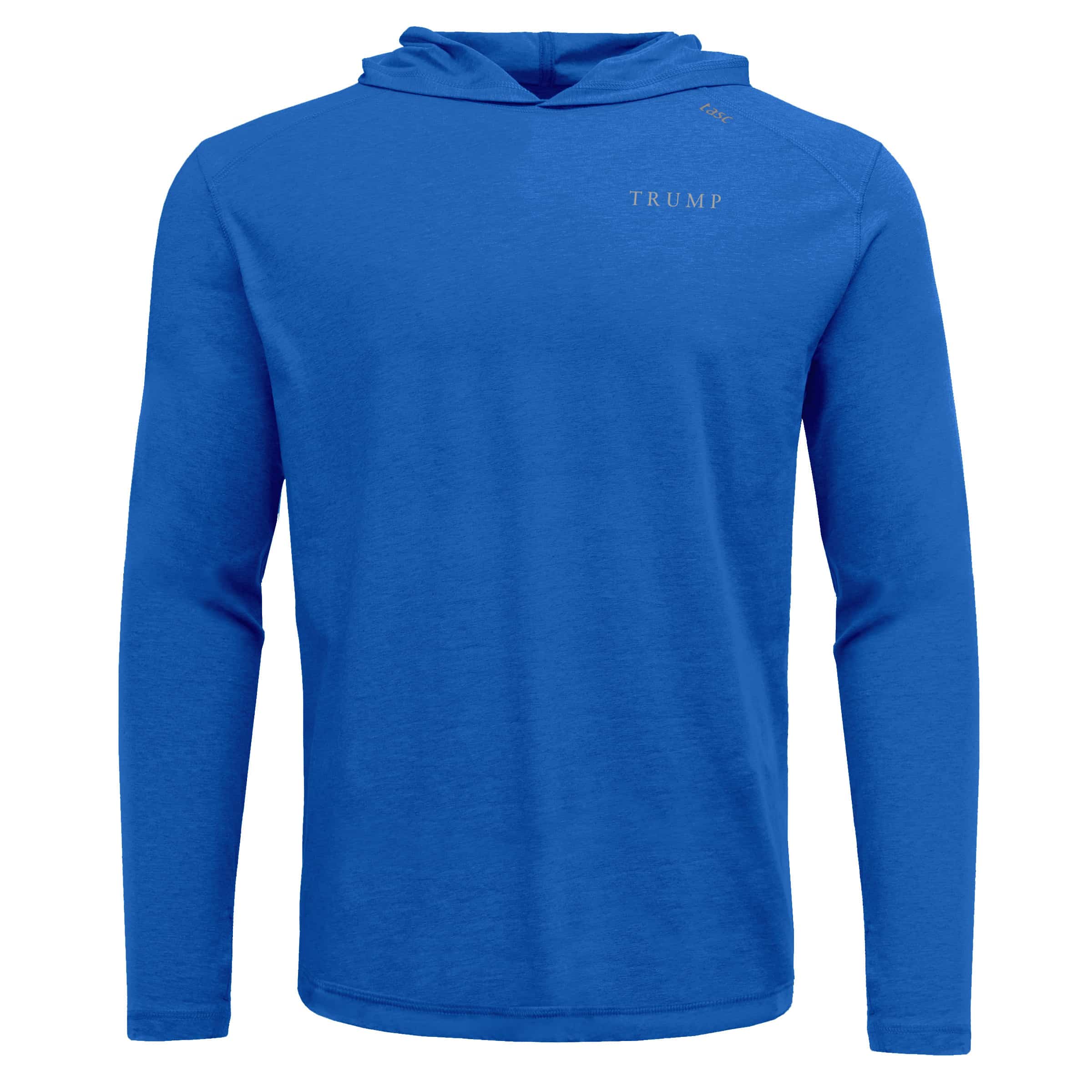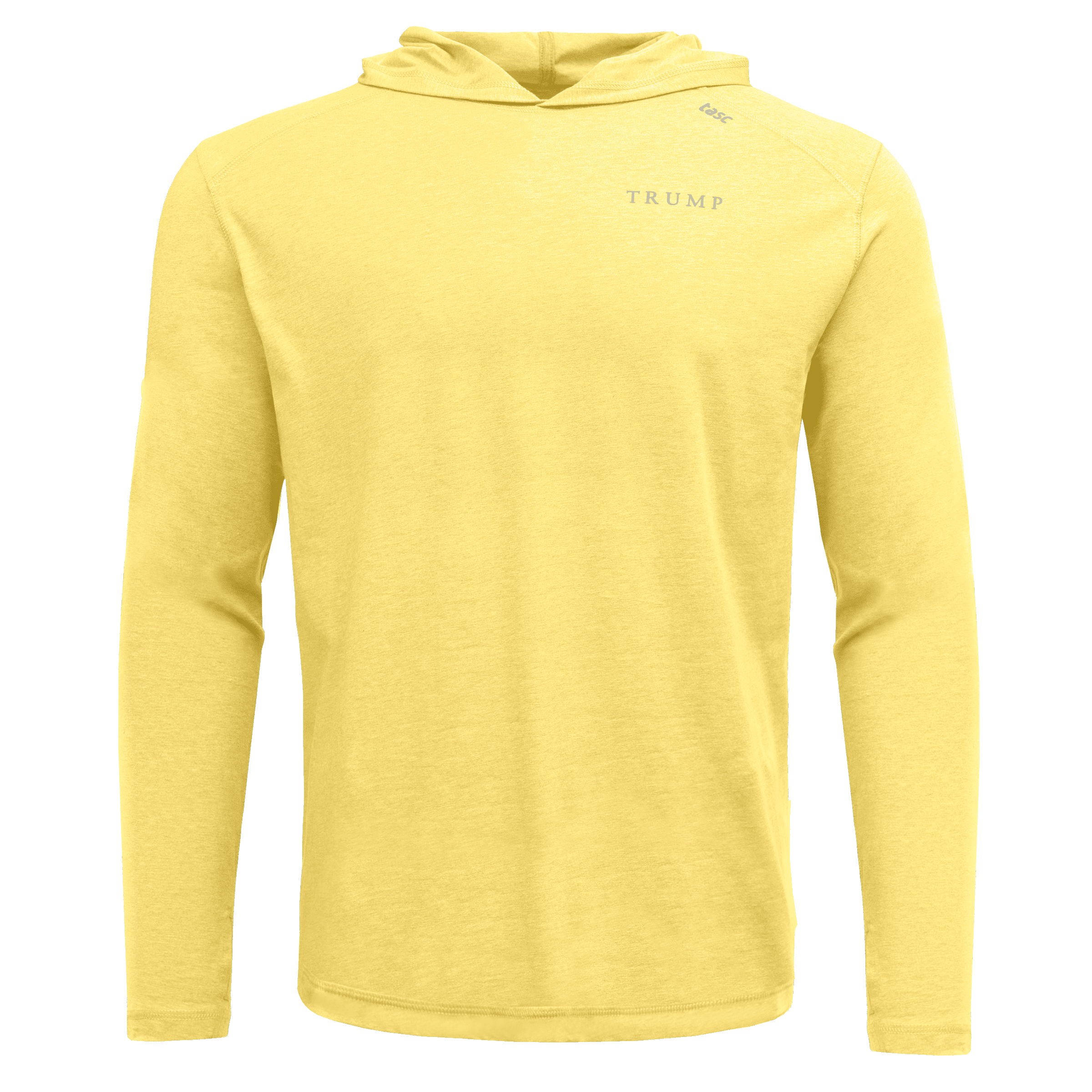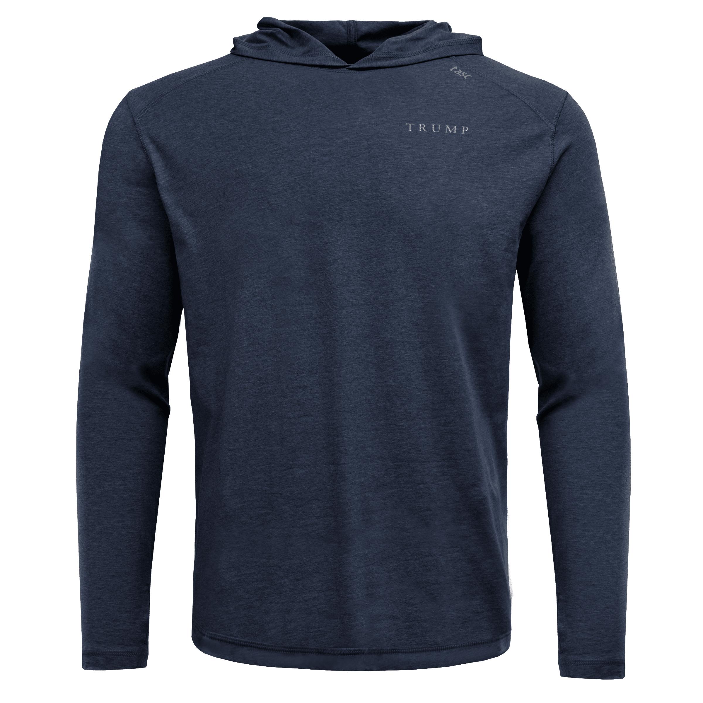 Your new best layering piece has arrived! This super lightweight hoodie has all the performance technology you need when it comes to being moisture-wicking and having 4-way stretch, but it also has odor-blocking properties and SPF. Take it to the beach, on the boat, or for an early morning jog. Natural bamboo and organic cotton make for a t-shirt-weight long sleeve. TRUMP logo on left chest.