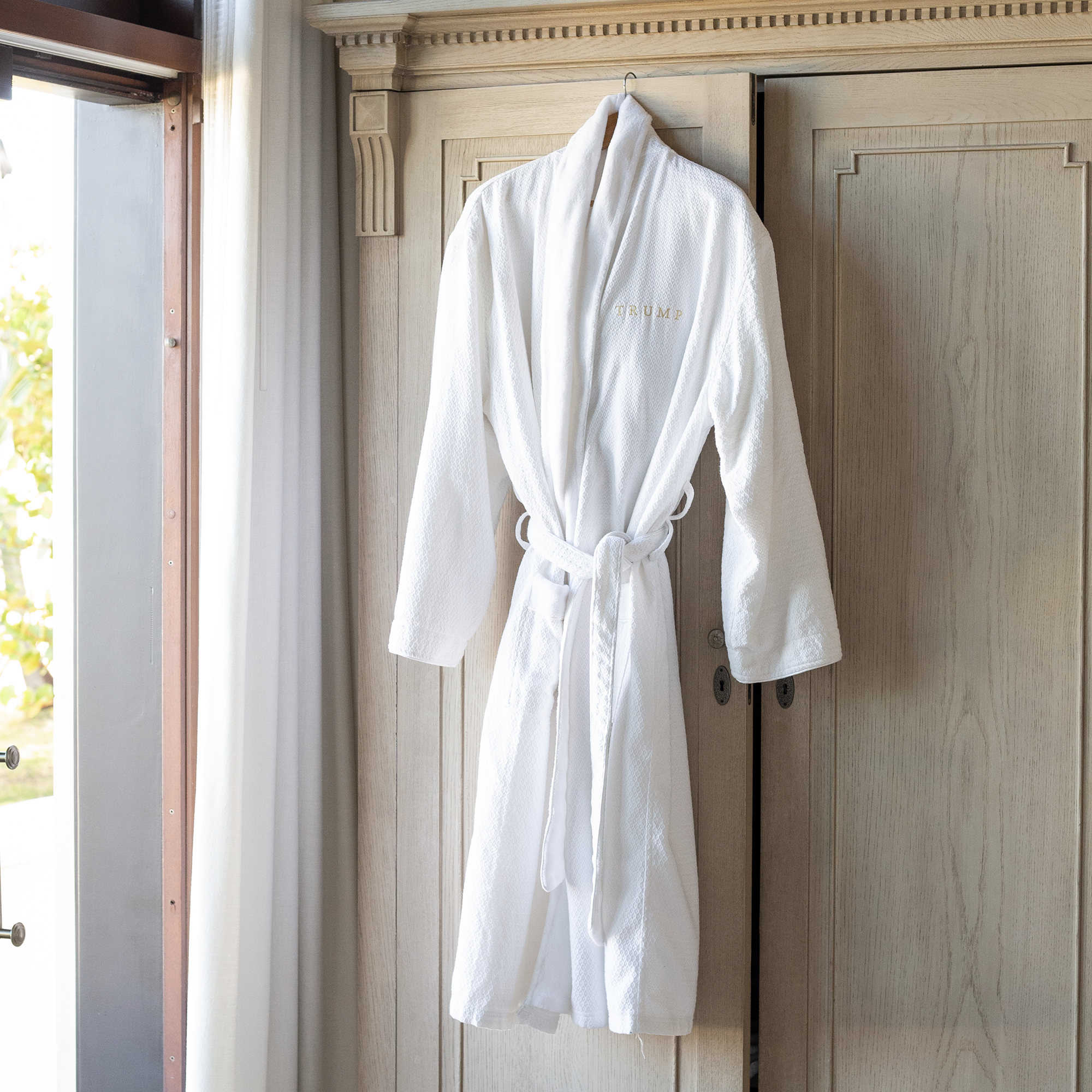 The most luxurious robe in our collection to date, we have taken our spa robe a step further. With a stylish waffle exterior, lush cotton terry interior, and gold embroidered Trump logo, our Trump Deluxe robe takes indulgence to the next level and delivers plush comfort.