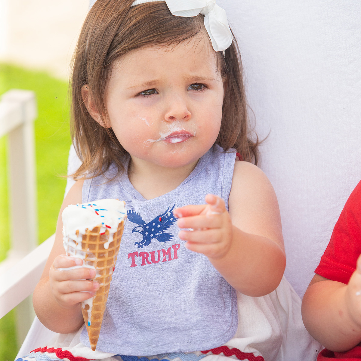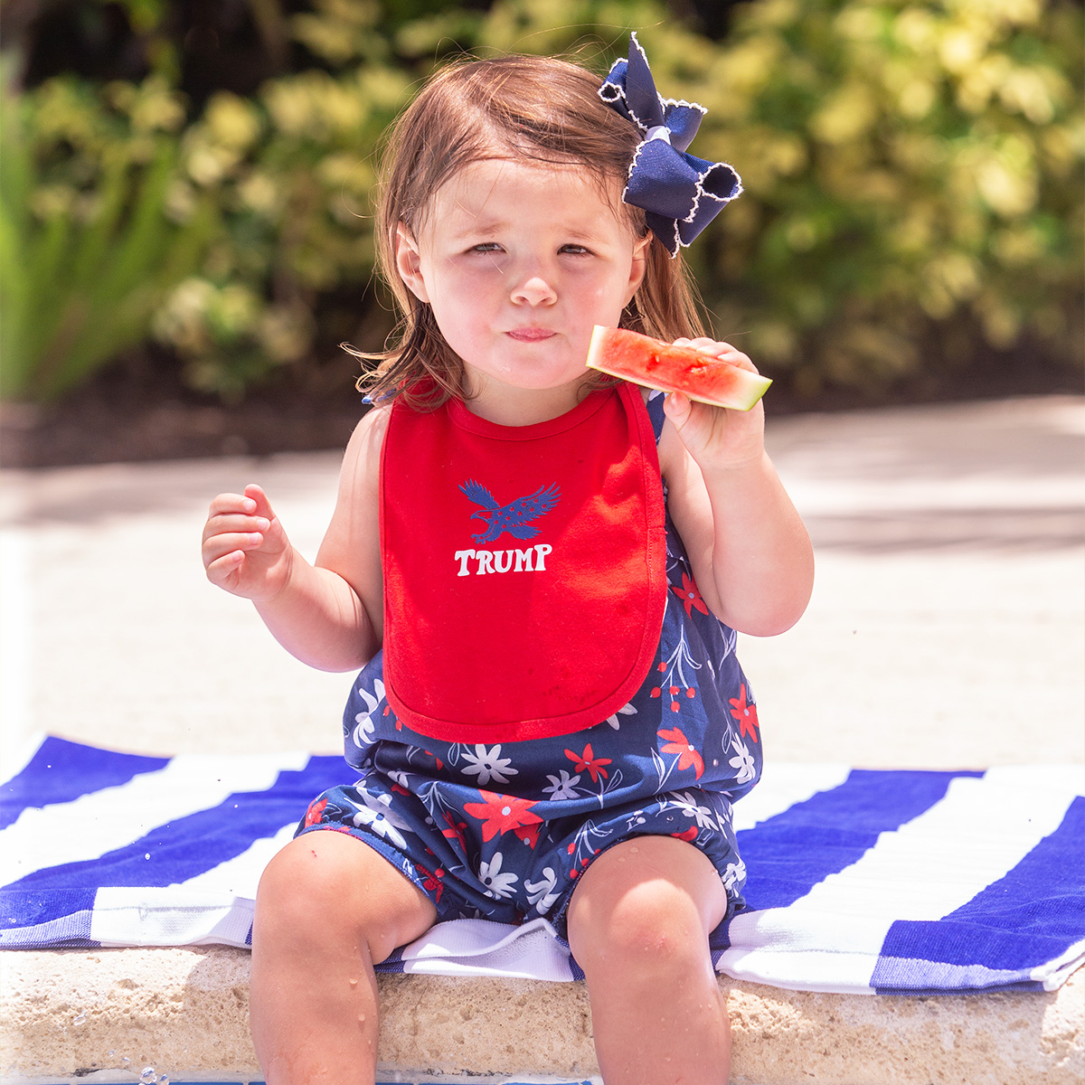 This adorable Trump Eagle Bib is perfect for your littlest firecracker! It features a bold eagle design, perfect for backyard BBQs, poolside snacks, and more.