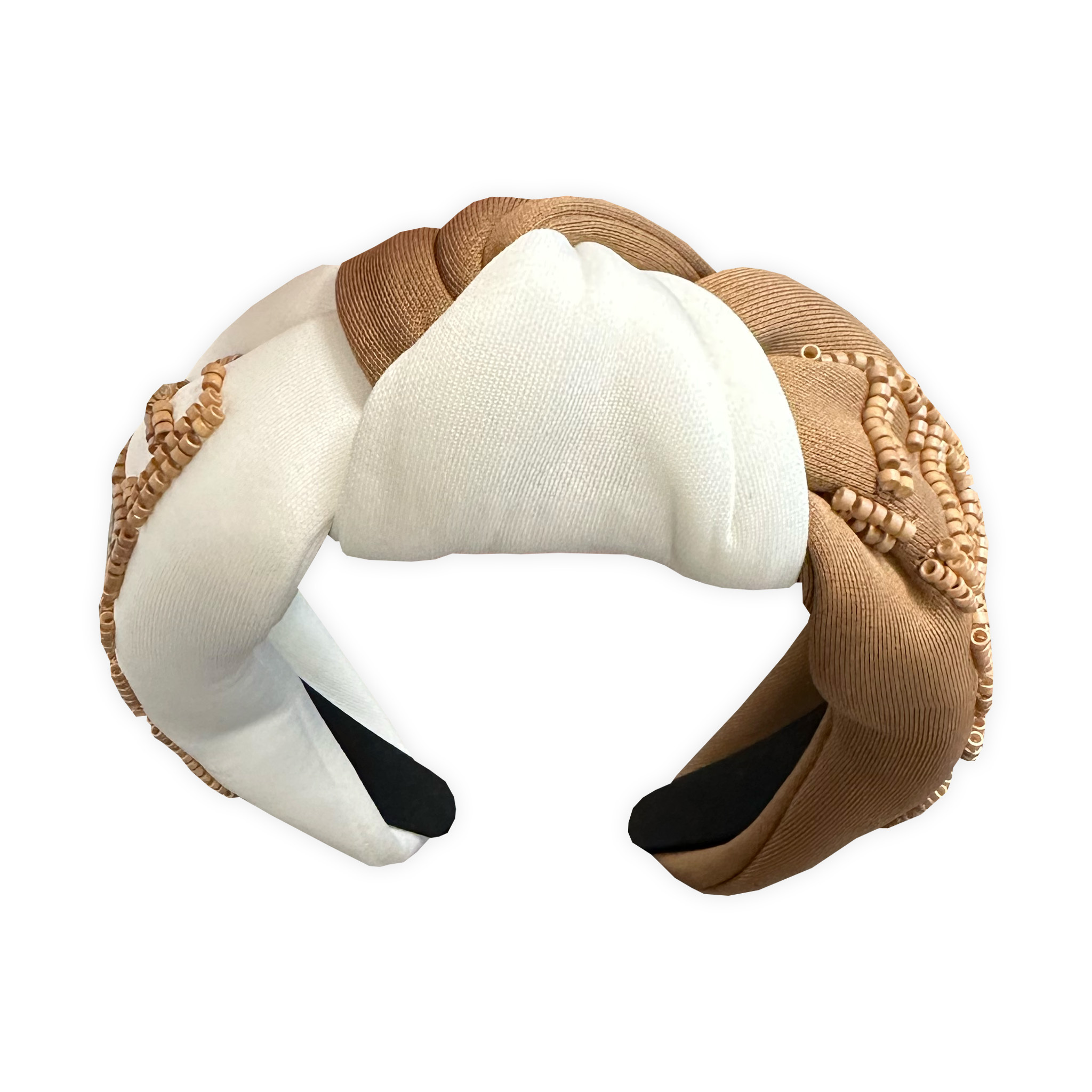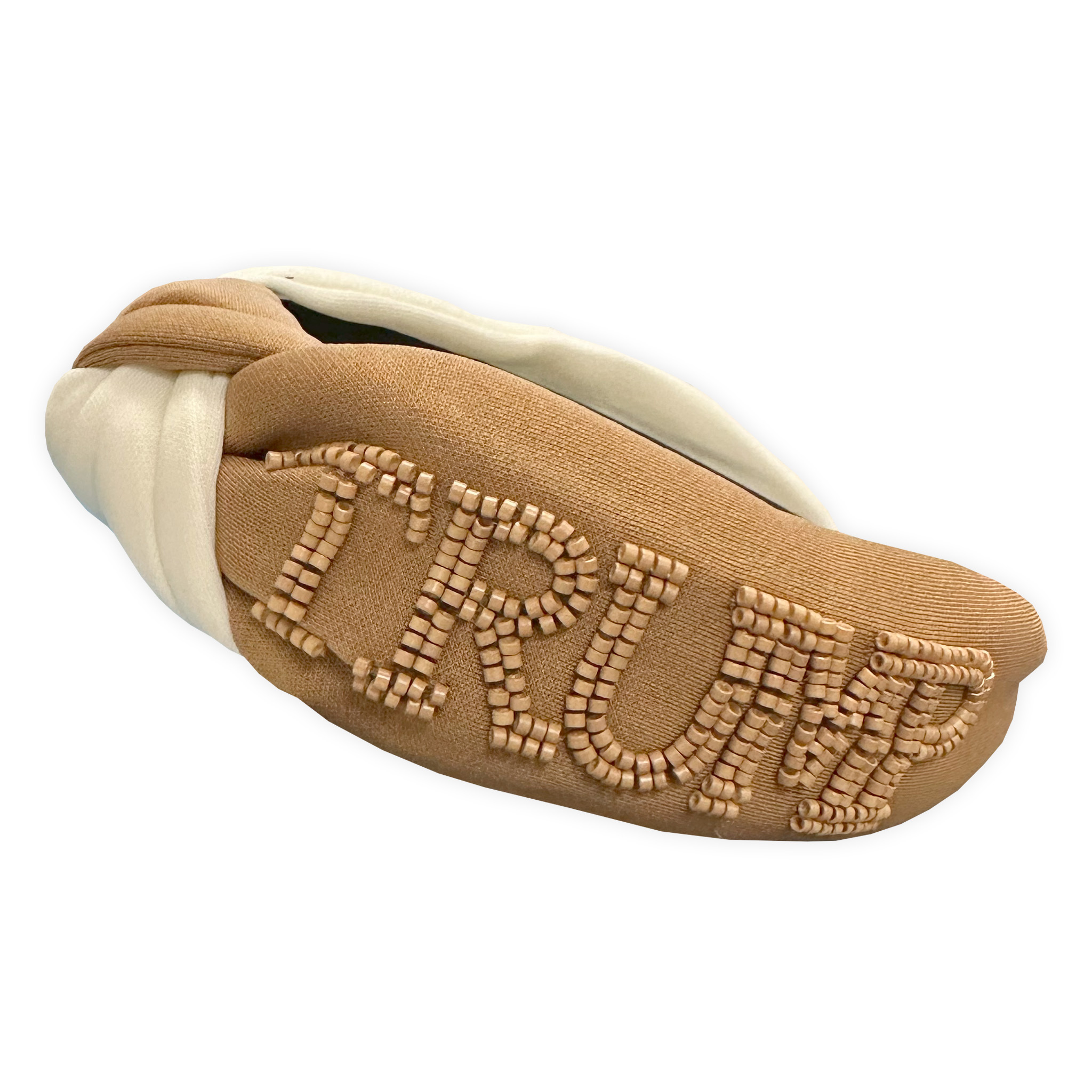 Celebrate the Golden Age of America with the gold beaded TRUMP headband. On trend and in cool tones of cream and gold, elevate your look with this fashionable hair accessory.