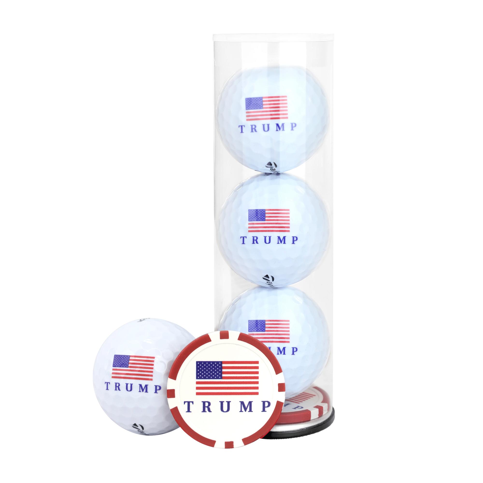 Celebrate your freedom on the course with the Trump America golf ball set. Features three balls and poker chip ball marker with the TRUMP and American flag. Makes a great gift for the golfer in your life.