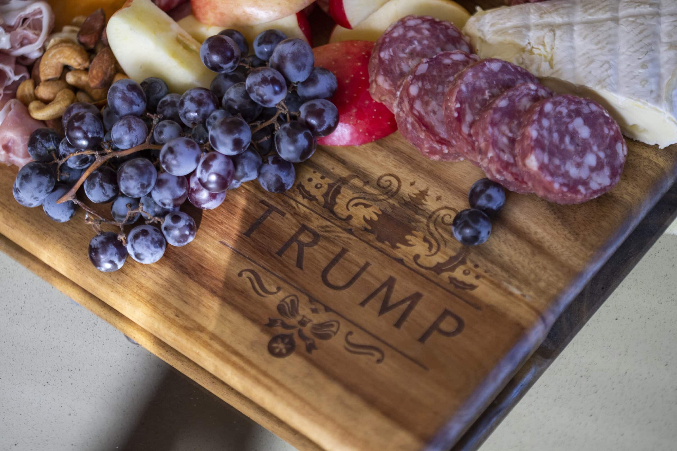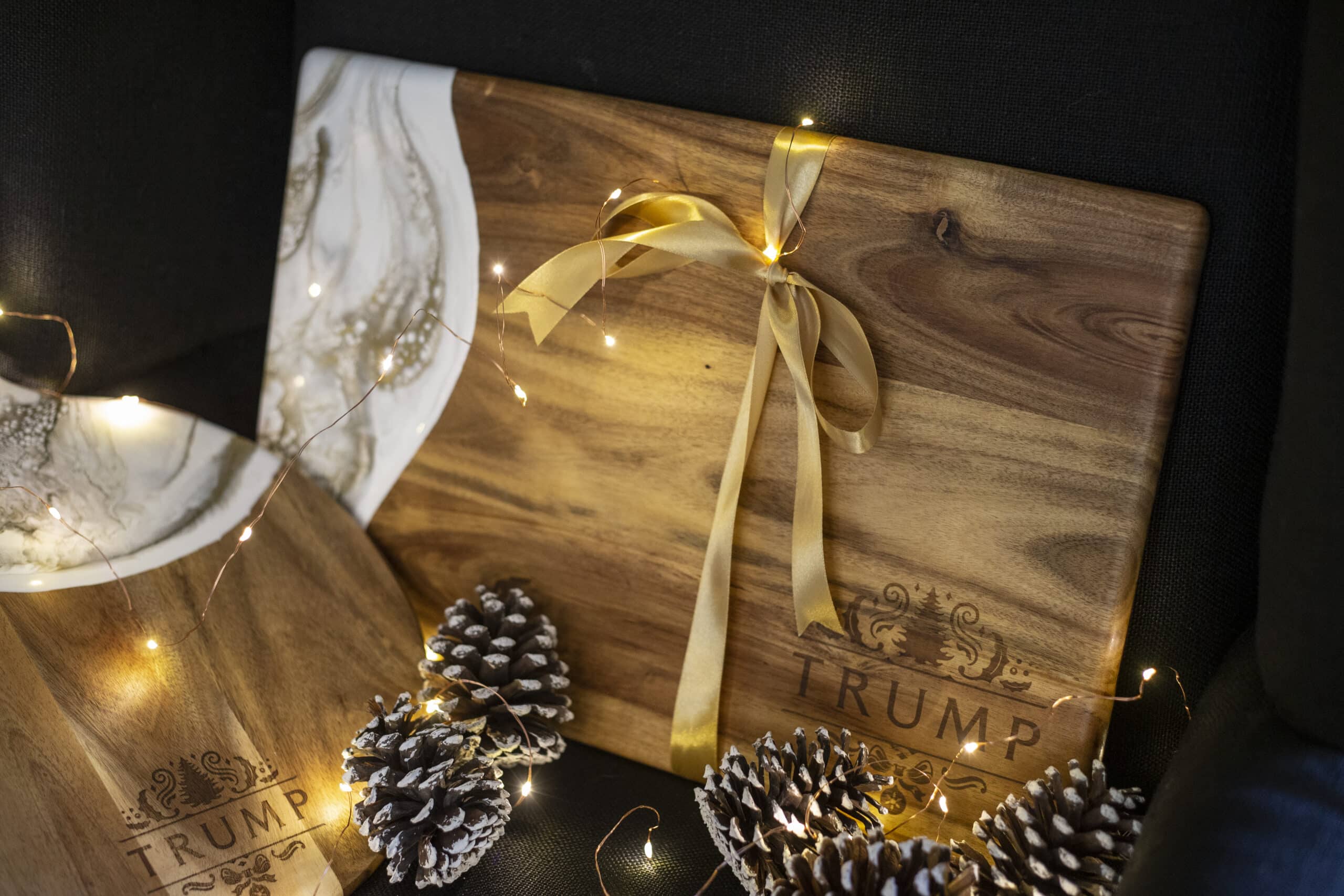 Wow everyone at your table with this exclusive Trump Holiday Acacia Bread Board. These pieces are made from high quality Acacia hardwood and an Eco-friendly epoxy to create a one-of-a-kind piece of serve ware for your home. This bread board is perfect for serving a group of 6-8 people.