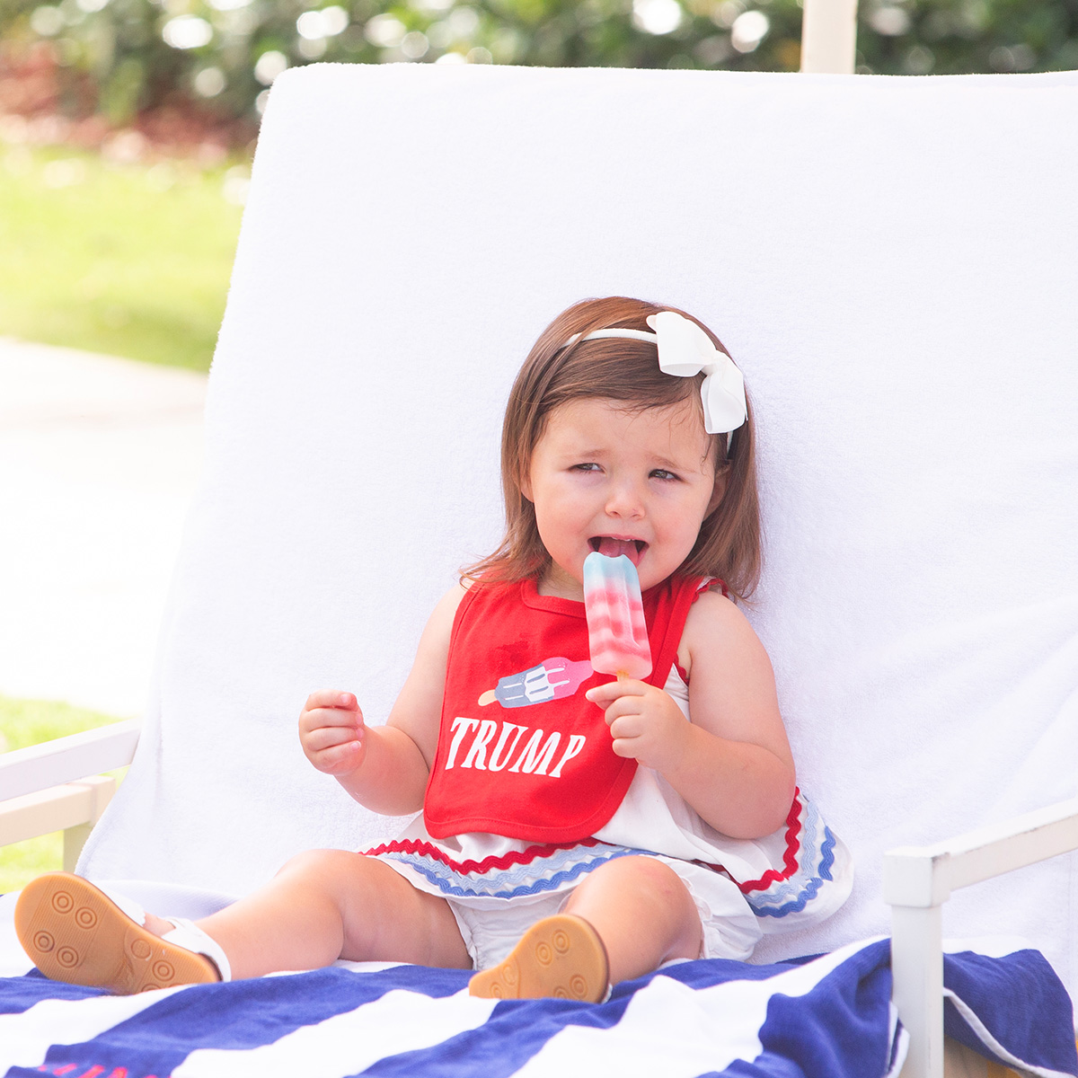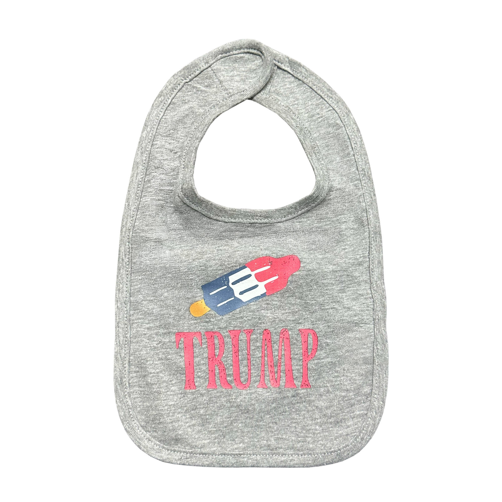 This adorable Trump Ice Pop Bib is perfect for your littlest firecracker! It features a patriotic ice pop, perfect for backyard BBQs, poolside snacks, and more.
