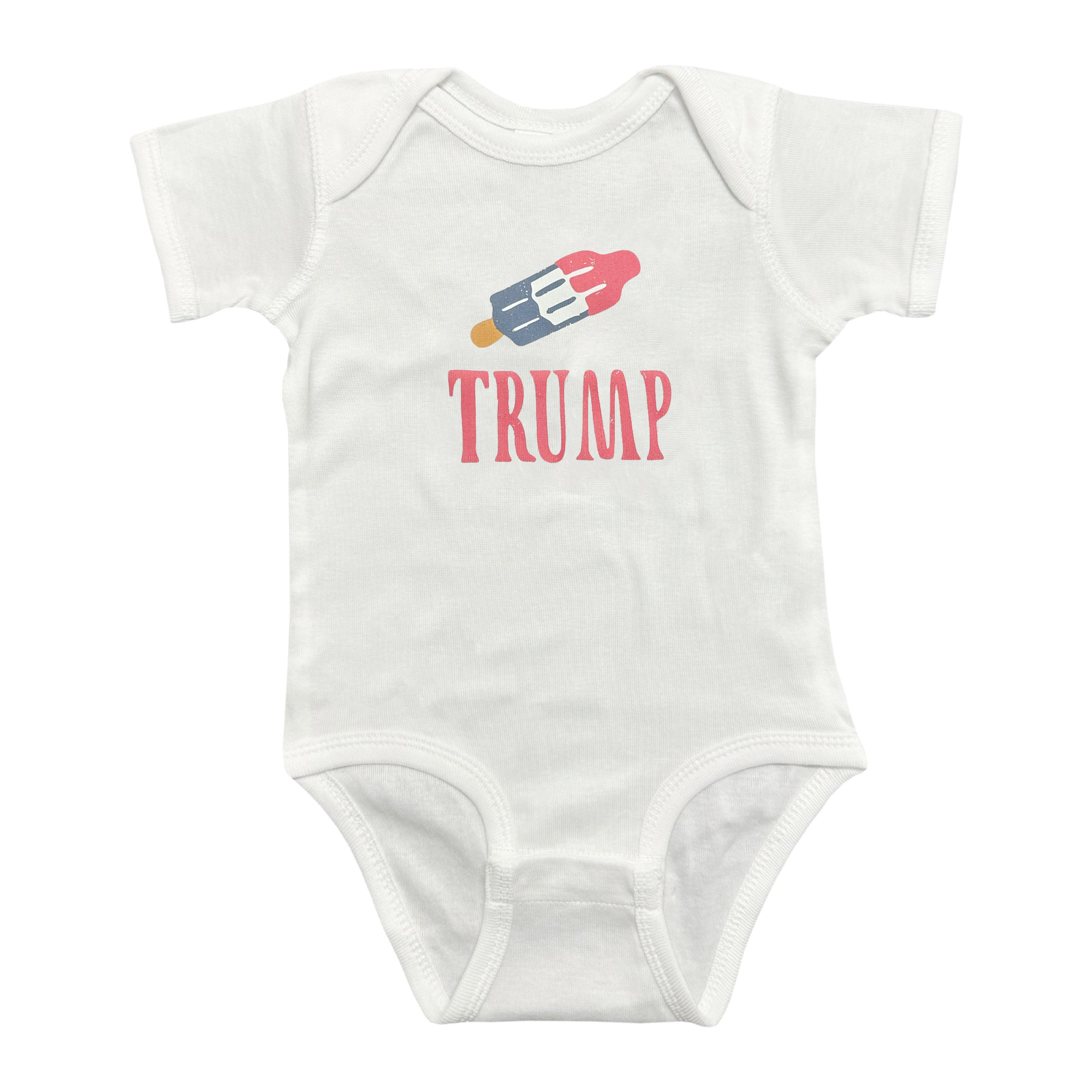 As cool as it looks! This Trump Ice Pop Onesie features a fun patriotic ice pop, and it’s as comfy as it is cute. Perfect for summer adventures with your little one.