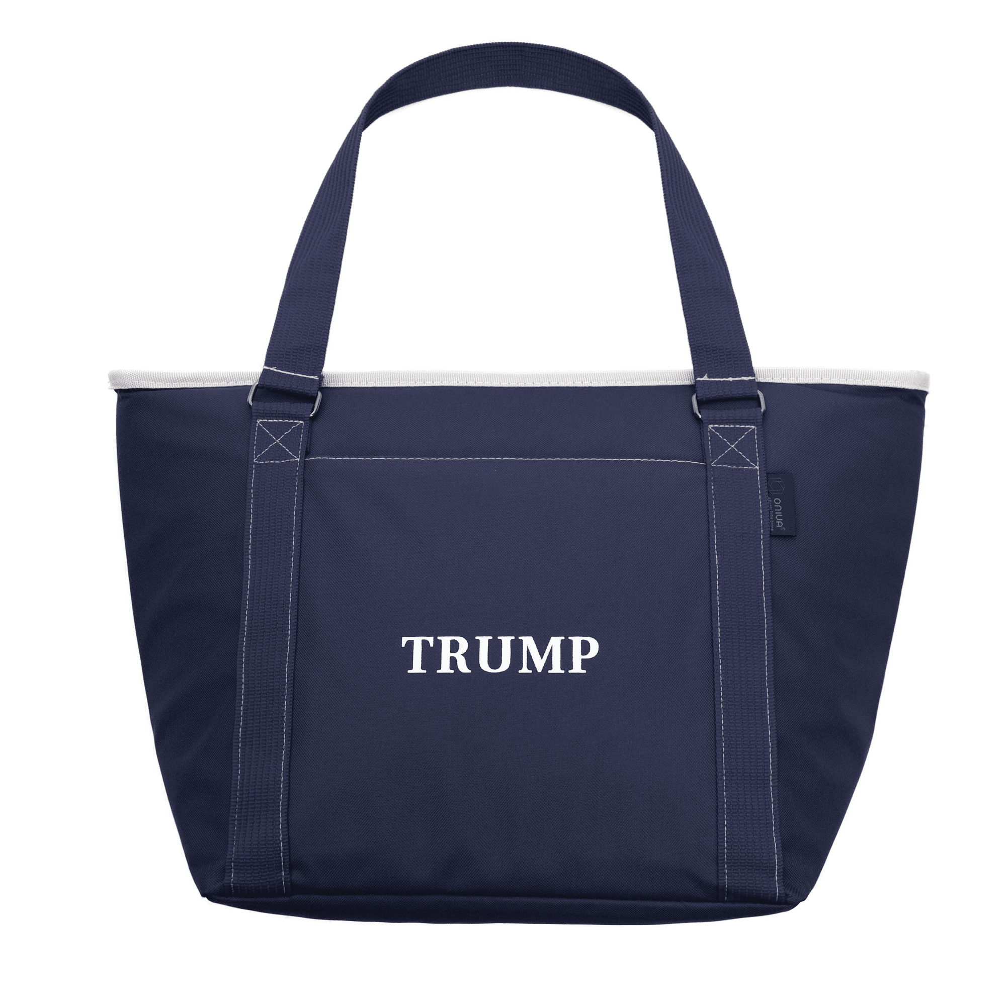 Head to the market and shop with the cool confidence of our cooler bag. Perfect for grocery shopping, the farmers market and more. Also great for boat trips, long car rides, and picnics. Zipper closure. TRUMP embroidered logo on the pocket.