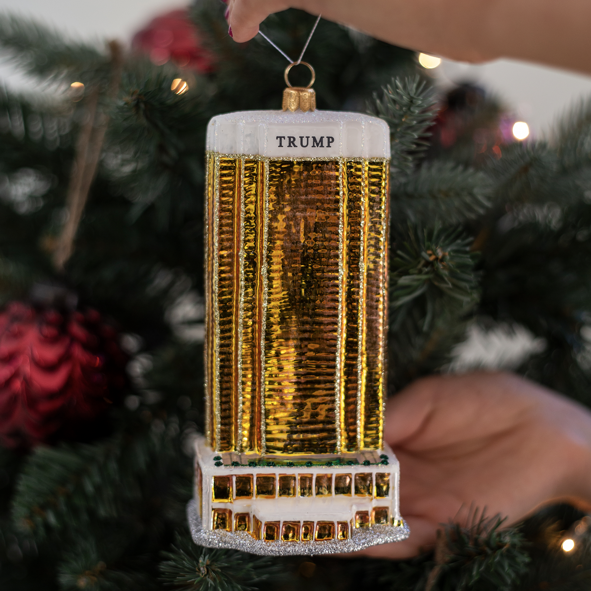 Add a pop of gold to your Christmas tree this holiday season with the Trump Las Vegas Ornament. A perfect 3D replica of Trump International Hotel Las Vegas, this handcrafted, hand-painted ornament portrays every last golden detail. The beautifully designed architecture is perfectly emulated in this ornament and will make you feel as though you’ve stepped into sin city itself.