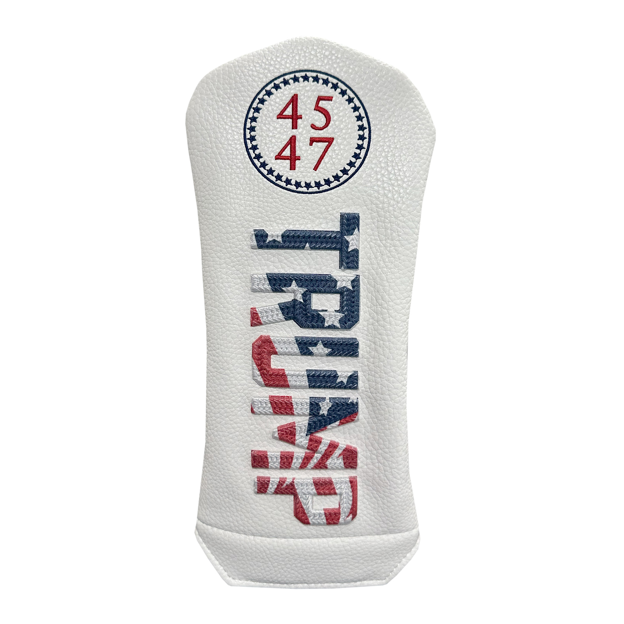 Show your USA pride every time you tee it up with the Trump Multi-Color Chainstitch Fairway Headcover. Designed in a bold red, white, and blue color scheme with the official 45-47 logo embroidered, it delivers both standout style and reliable protection. Built to fit all fairway woods sizes and some smaller driver heads, this cover features a strong magnetic closure for a secure fit. The soft interior lining ensures your club’s finish stays protected from scratches and wear, round after round.