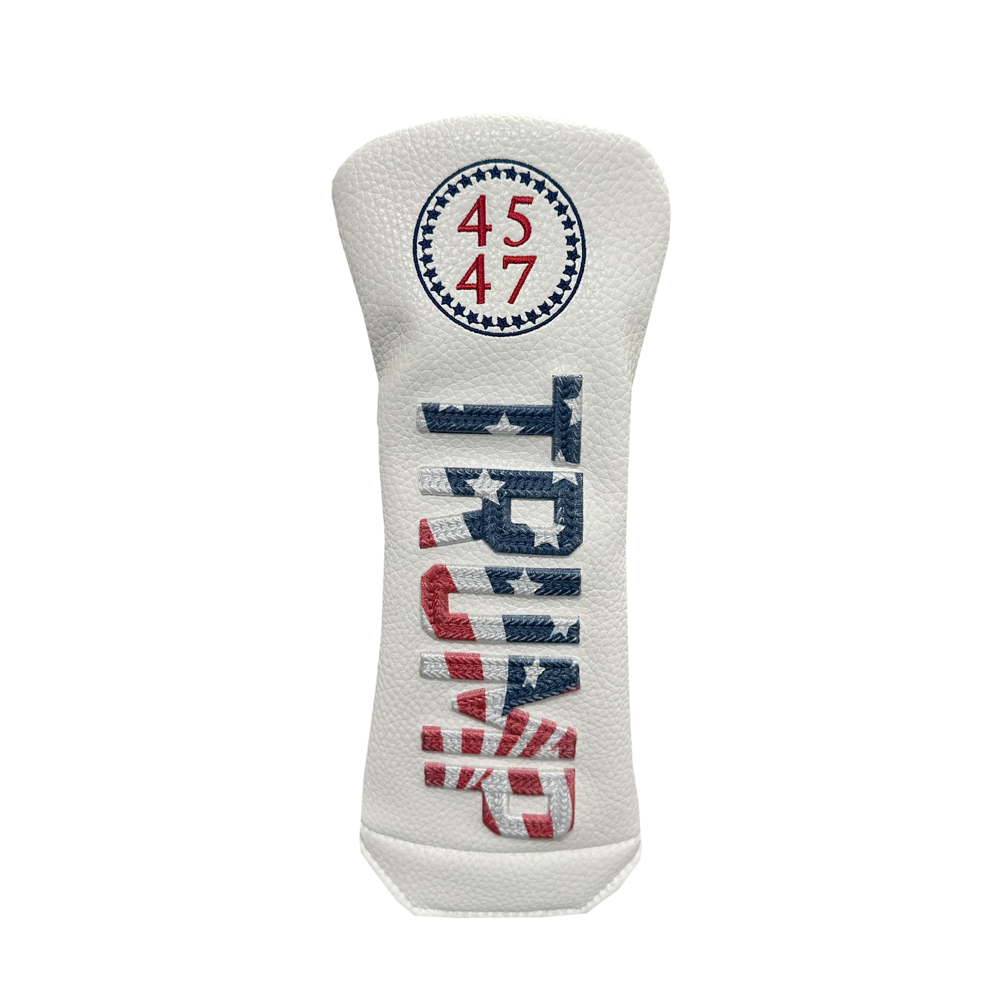 Show your USA pride every time you tee it up with the Trump Multi-Color Chainstitch Rescue Headcover. Designed in a bold red, white, and blue color scheme with the official 45-47 logo embroidered, it delivers both standout style and reliable protection. Built to fit all rescue sizes and some smaller fairway woods, this cover features a strong magnetic closure for a secure fit. The soft interior lining ensures your club’s finish stays protected from scratches and wear, round after round.