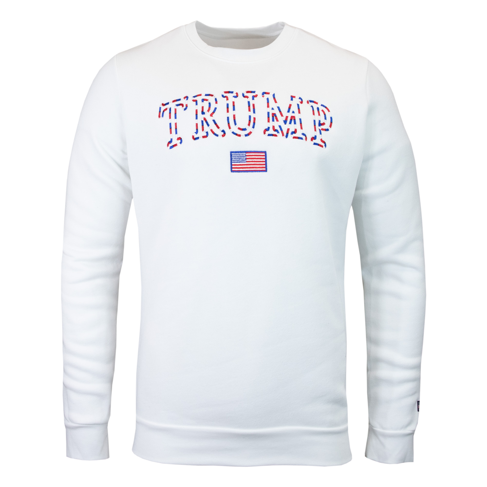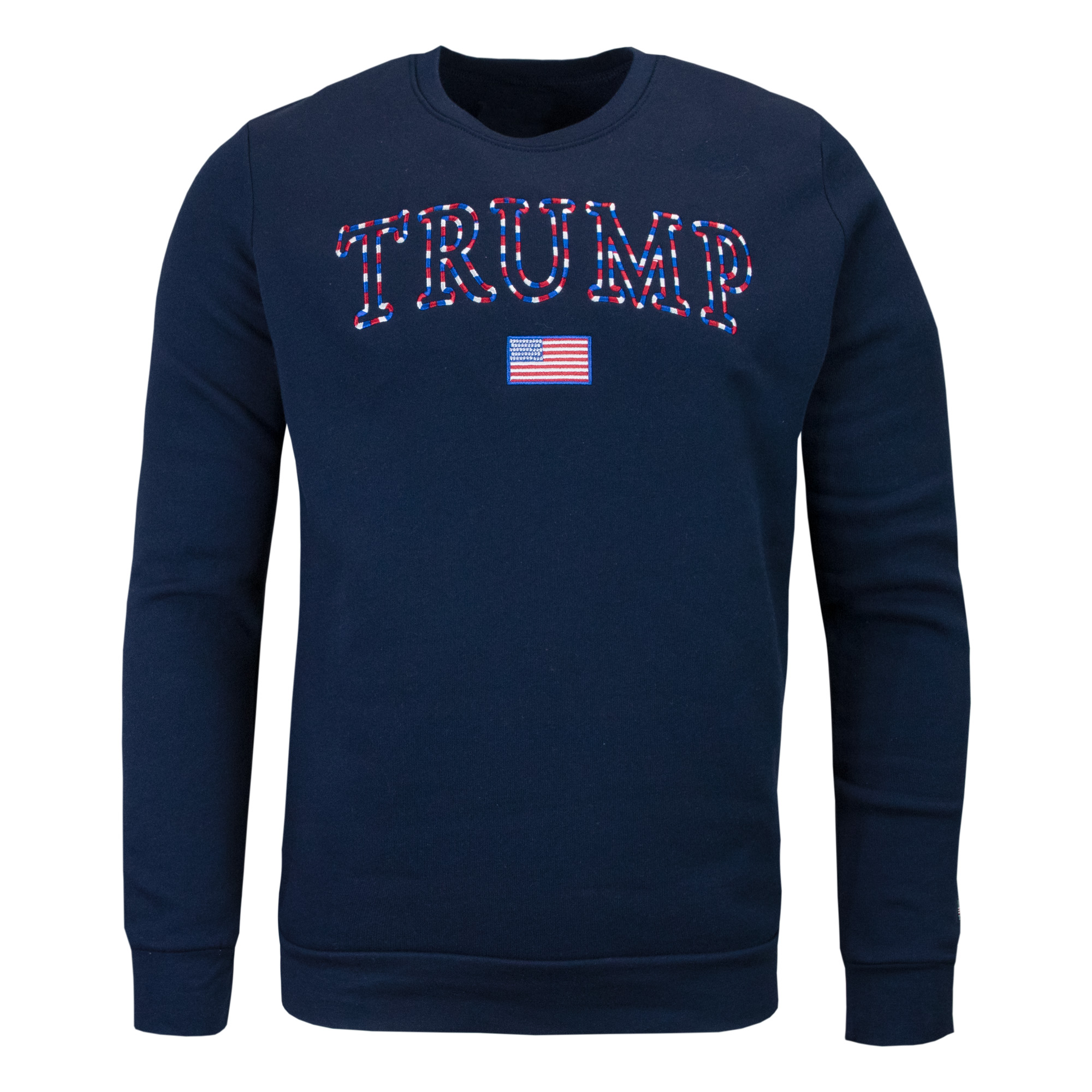 Prepare to own the most comfortable crewneck. Made in America of cotton-blend fleece, this cozy, soft crew is designed for comfort with a touch of pride. Featuring the Trump logo stitched in bold red, white, and blue, and finished with an American flag patch beneath it, this piece is a timeless staple.