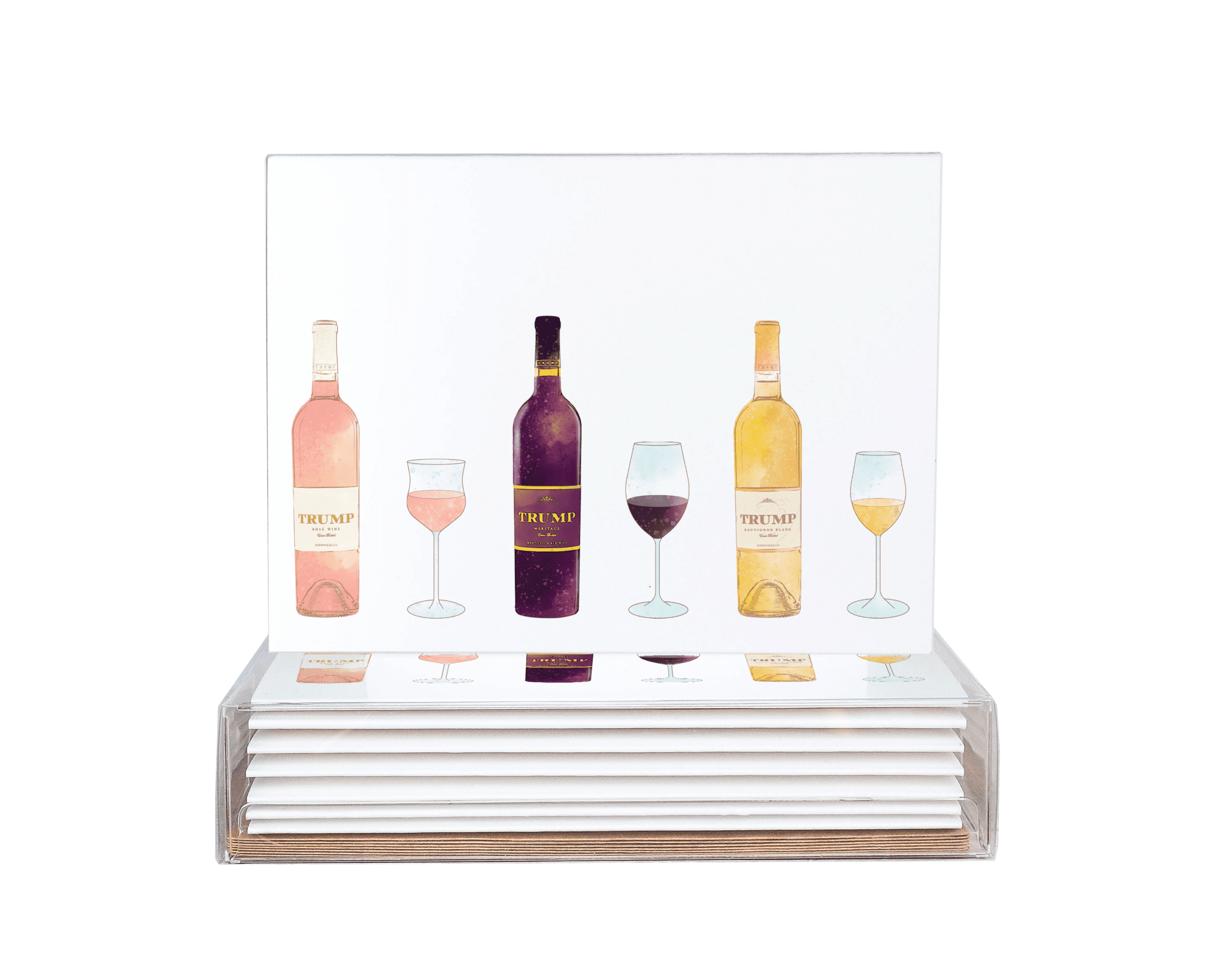 These blank note cards come in a set of 10 with Trump wine bottles and glasses on the front for a year-round design. Add any note inside to personalize your message for any occasion.