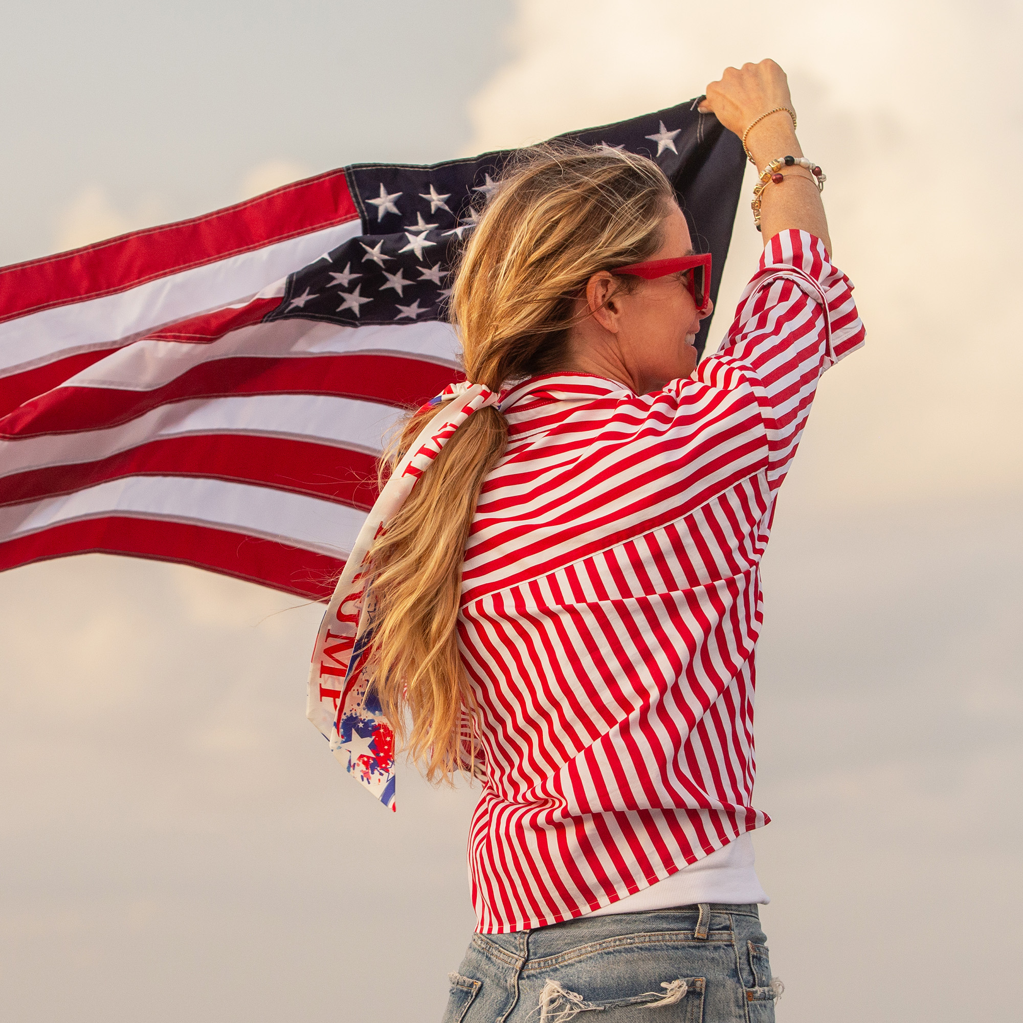 Show your patriotic pride with our Twill Trump Scarf. Available in bold red or classic blue. Wear it as a headscarf, wrap it around your neck, or tie it to your tote bag for a pop of color. Lightweight and soft, it’s the perfect finishing touch for fireworks, festivals, and everyday freedom.